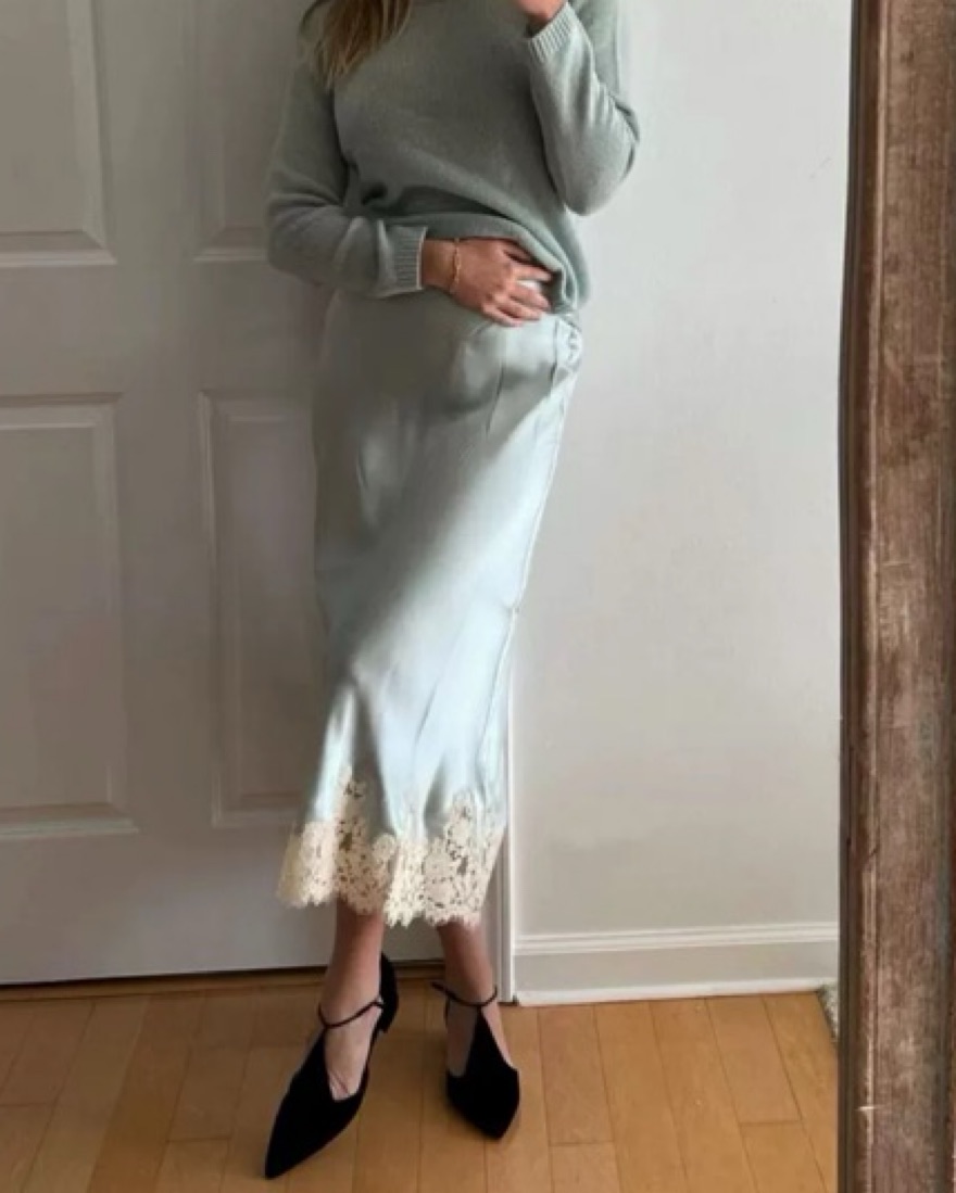 Doen Elowen Silk Lace Skirt In Teal by Doen - Pickle