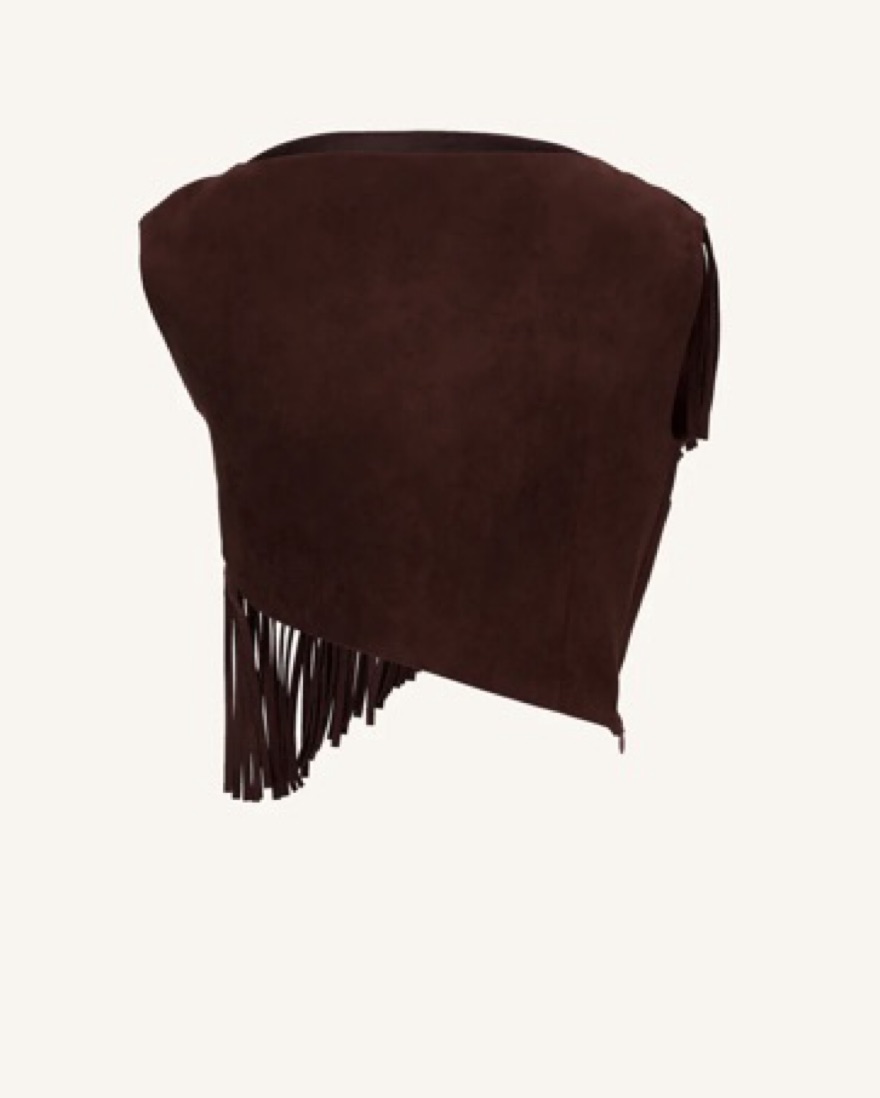 Brown Asymmetric Fringe Sueded top
