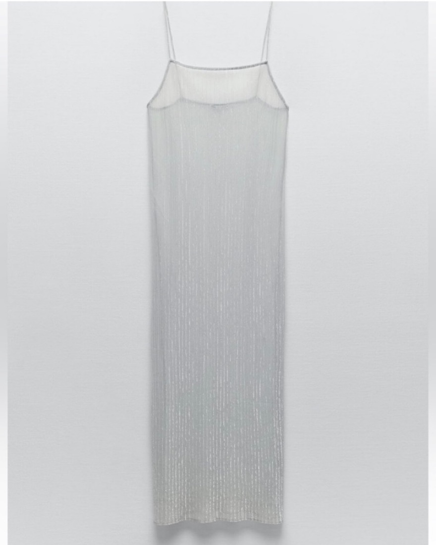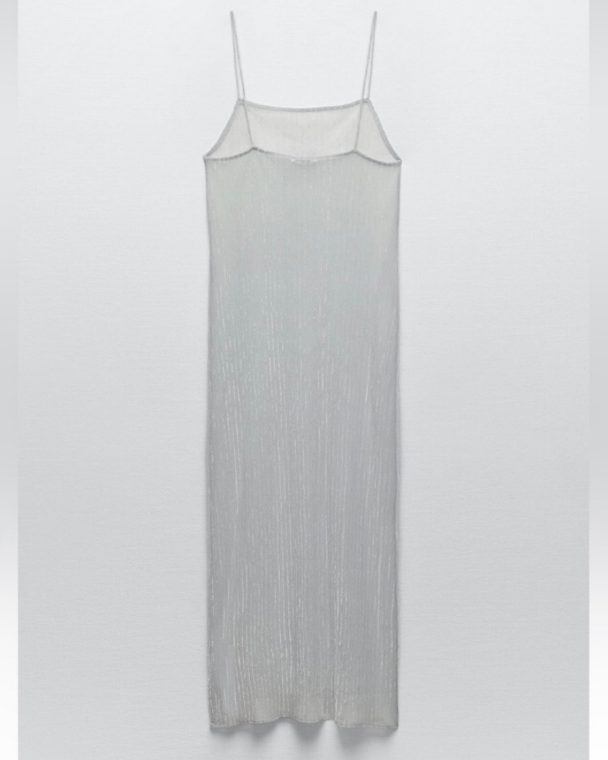 Zara Pleated Silver Metallic Dress