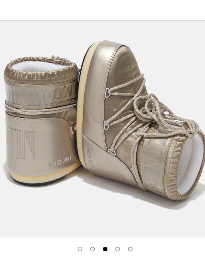 Size 36/38. Sizes 6-8. All that glitters is not gold... sometimes it’s a glossy satin Moon Boot. Inspired by the 1969 lunar landing, the Icon’s design riffs on high-technology astronaut gear. It features all the hallmarks of the original