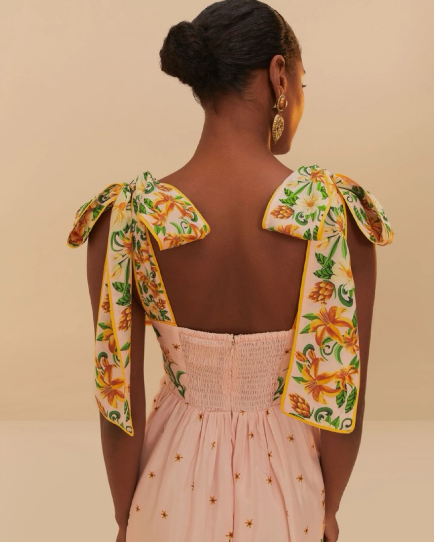 Only worn once. Gorgeous in season Farm Rio baby pink dress. Perfect for baby shower, weddings, or summer events. Very comfortable and super flattering. Pictures dont do it justice- its even better in person.