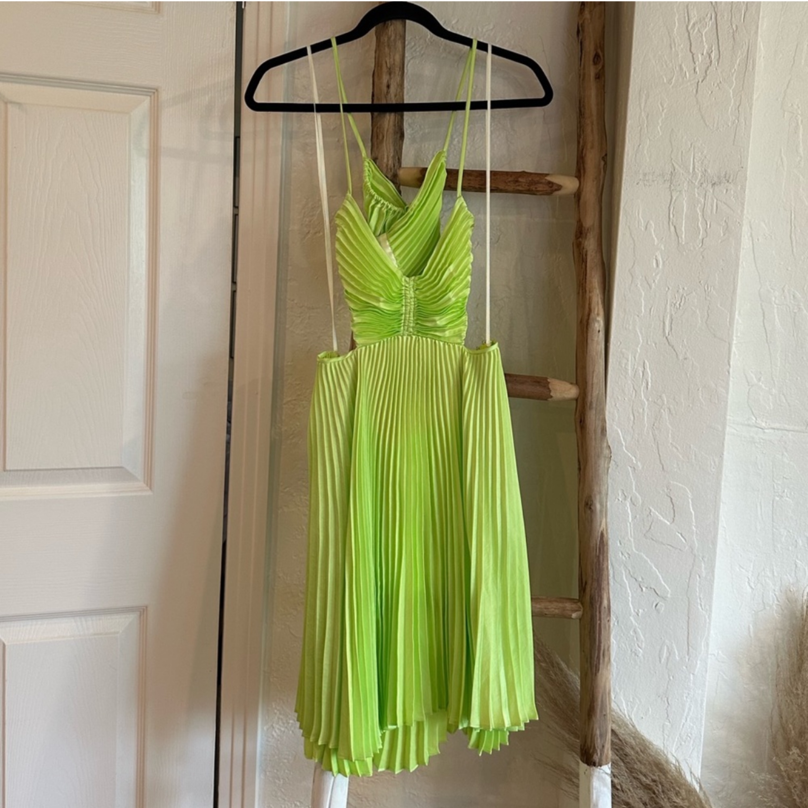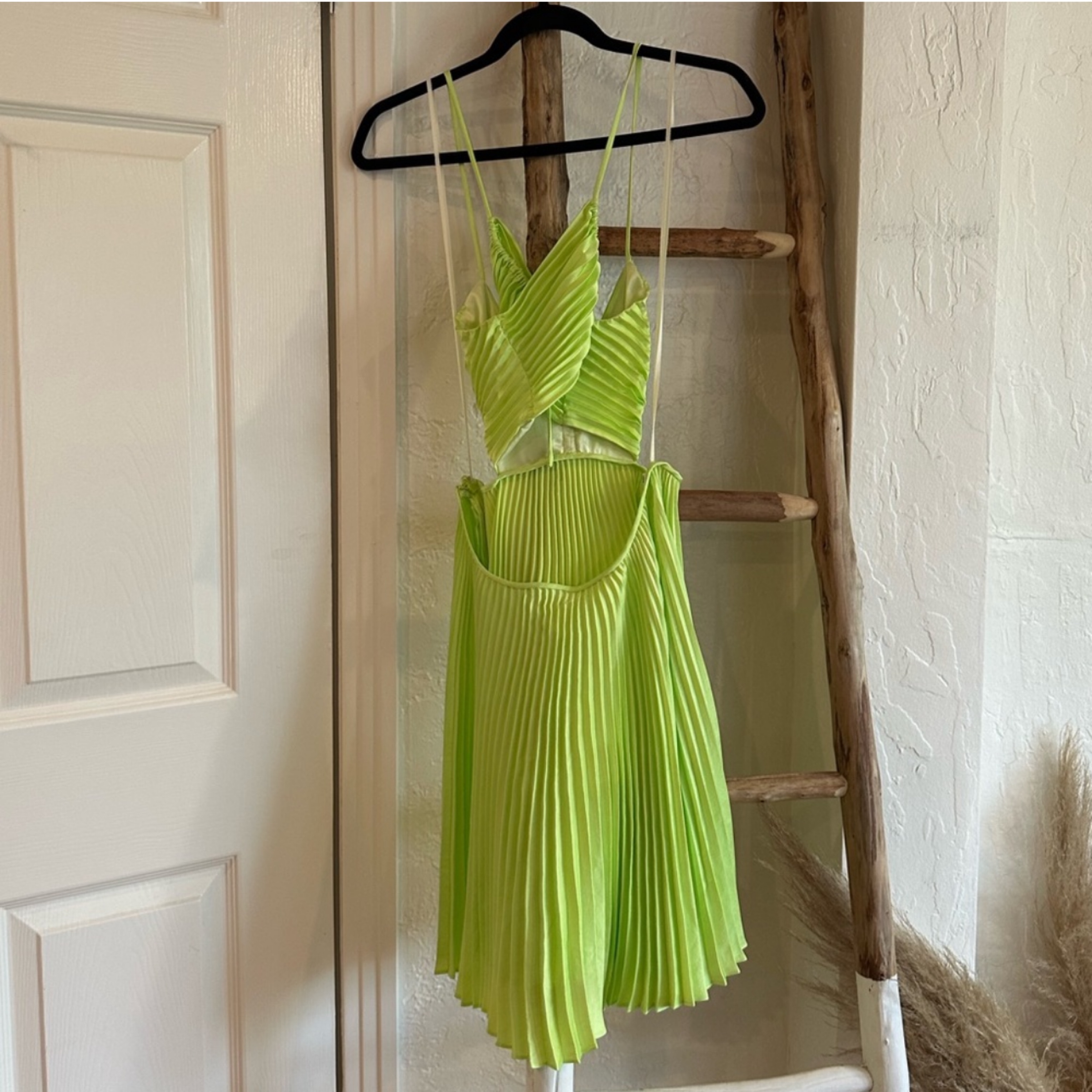 ALC mini dress. Pleated. Neon Green. Fits a 2 as well.
