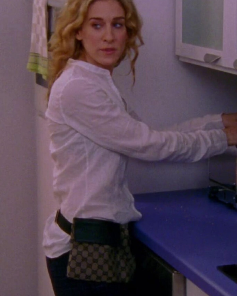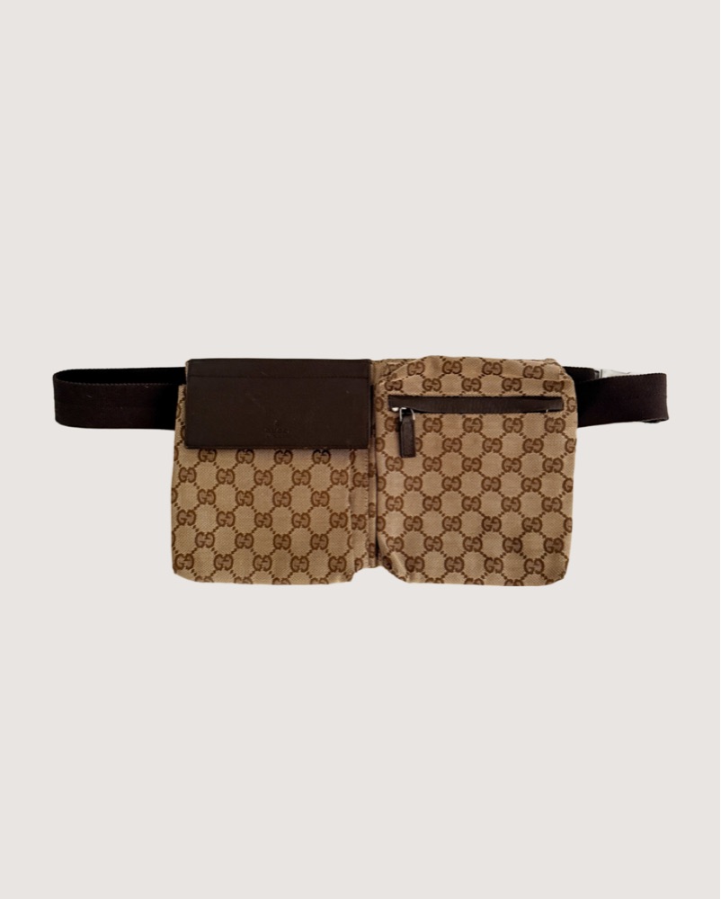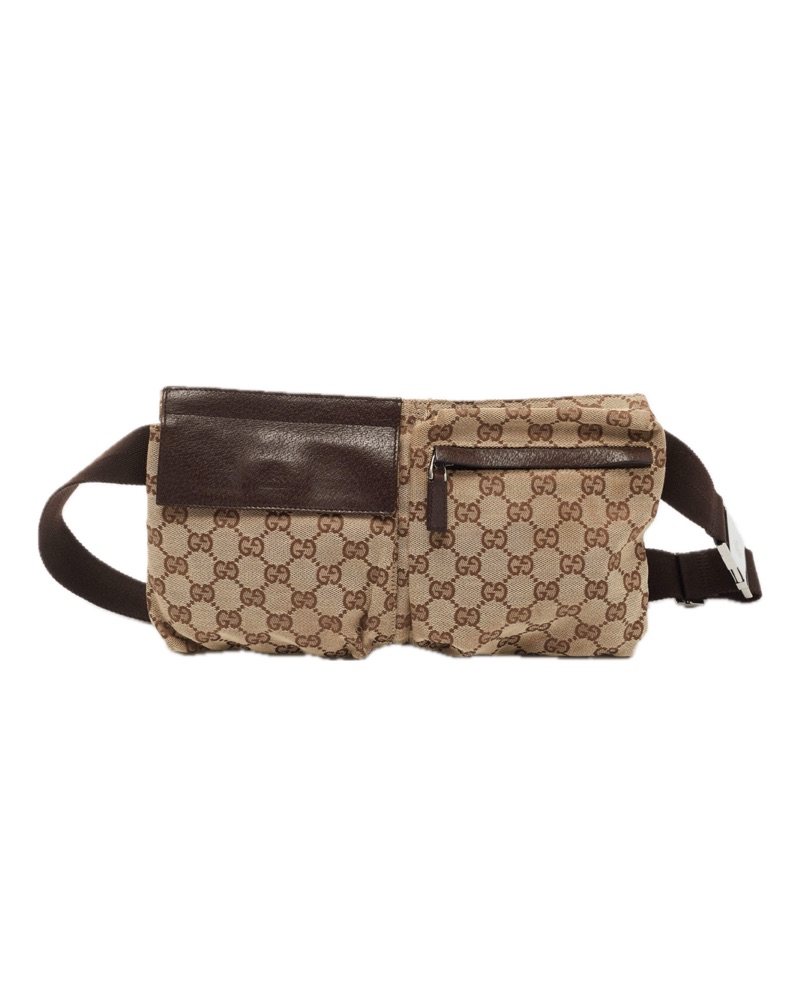 AS SEEN ON CARRIE BRADSHAW! The iconic Gucci belt bag. Silver hardware buckle closure, adjustable straps. 2 pocket details - Velcro flap on the left, zipper closure on the right.