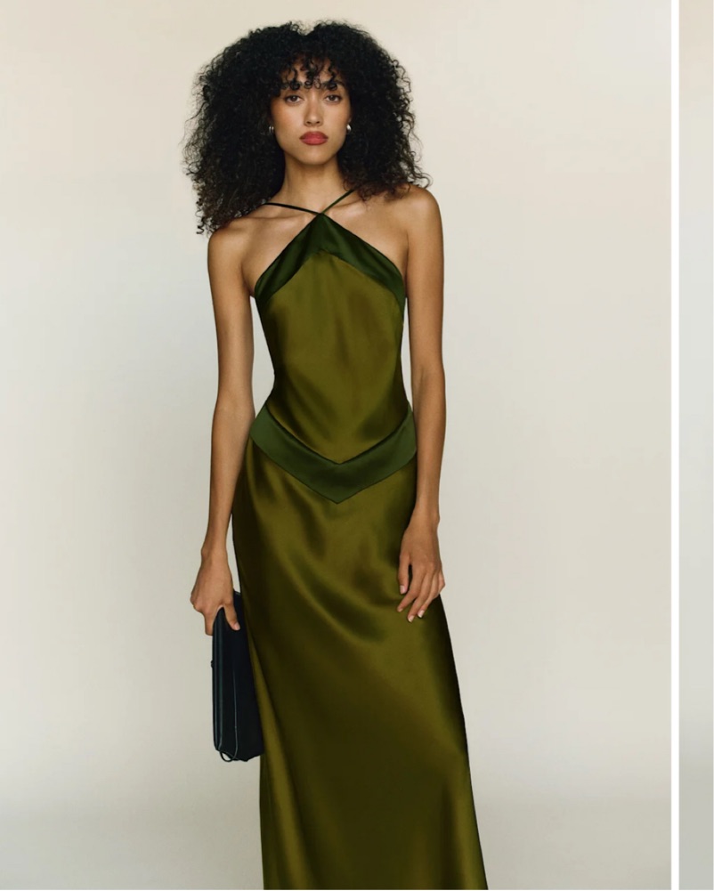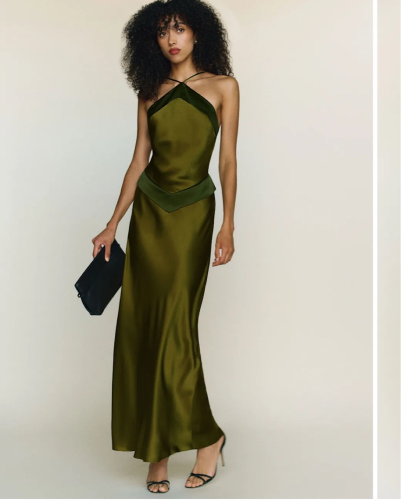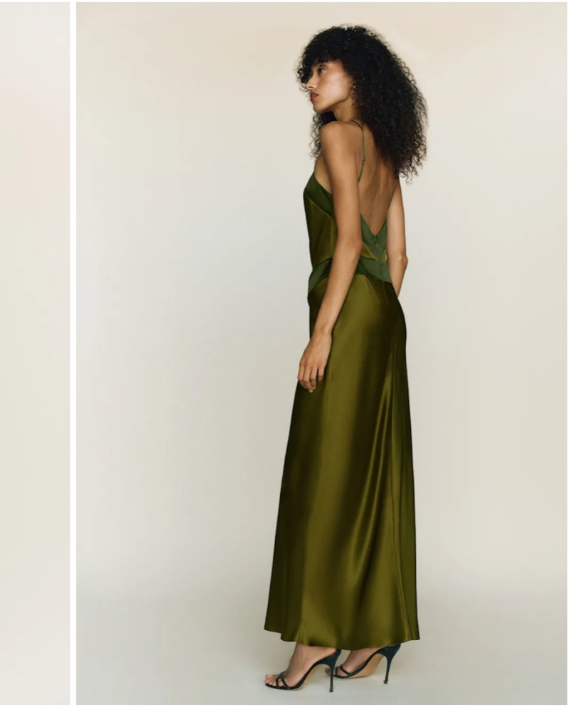 Center of attention. Shop the Jillian Silk Dress from Reformation, a sleeveless maxi dress with an adjustable halter-style neckline and open back.