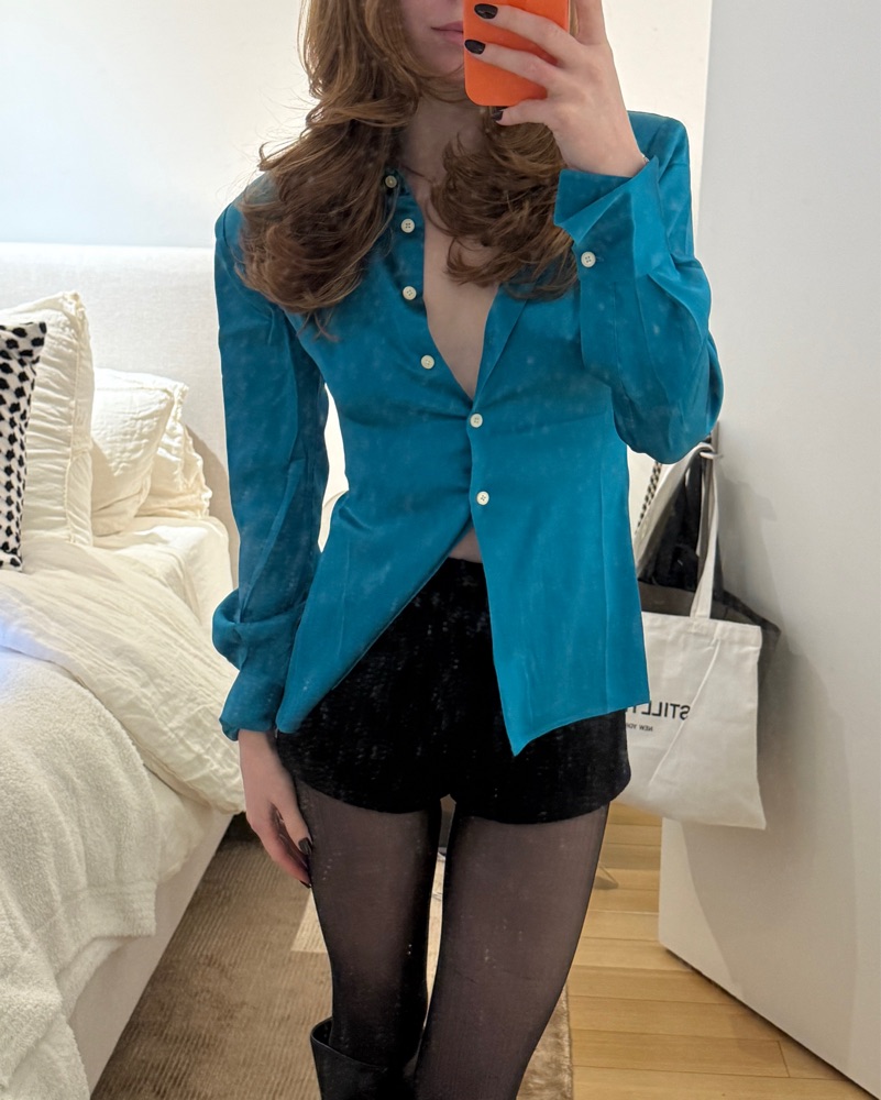 Silk button up from Helsa. Color: cerulean blue. Gorgeous shirt. Has shoulder pads