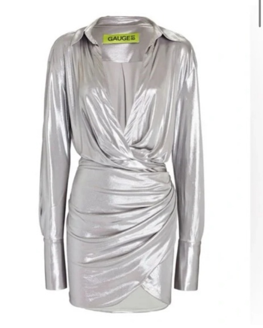 Gauge81 Naha Silver Draped Wrap Dress by Gauge81 - Pickle