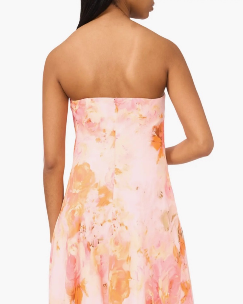 This stunning maxi dress features a vibrant floral print that is perfect for a summer wedding or garden party.