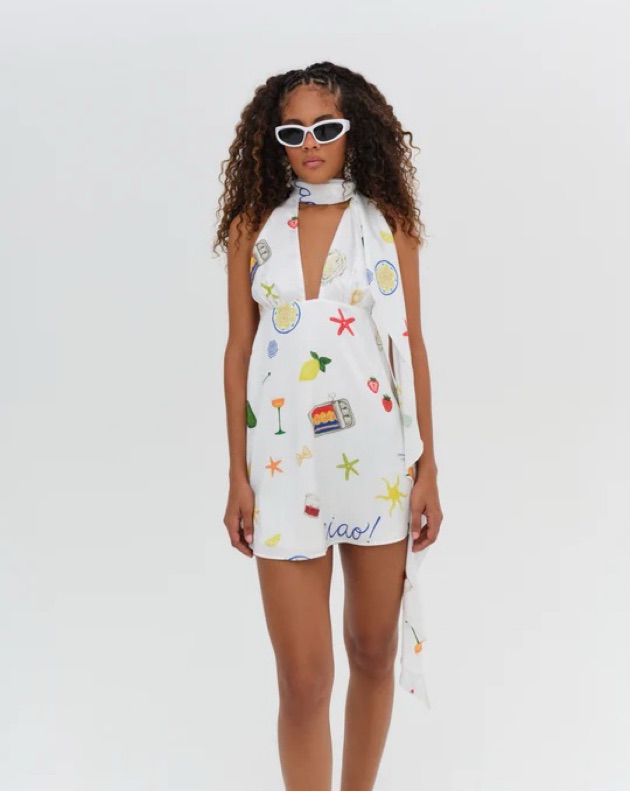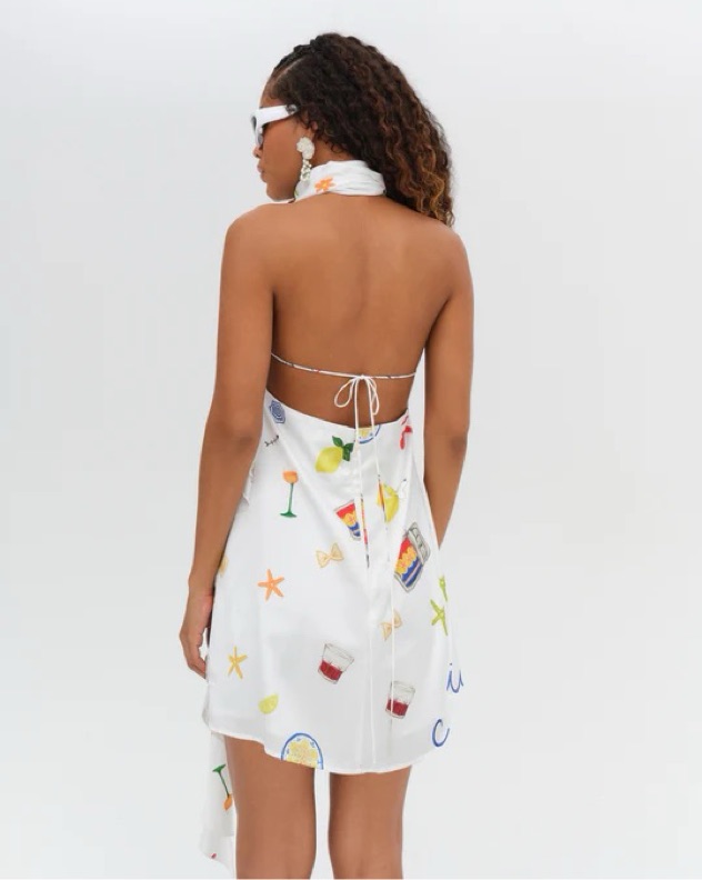 Satin halter neck mini dress in size XS. Tied the scarf as a bow in the back in my pictures!