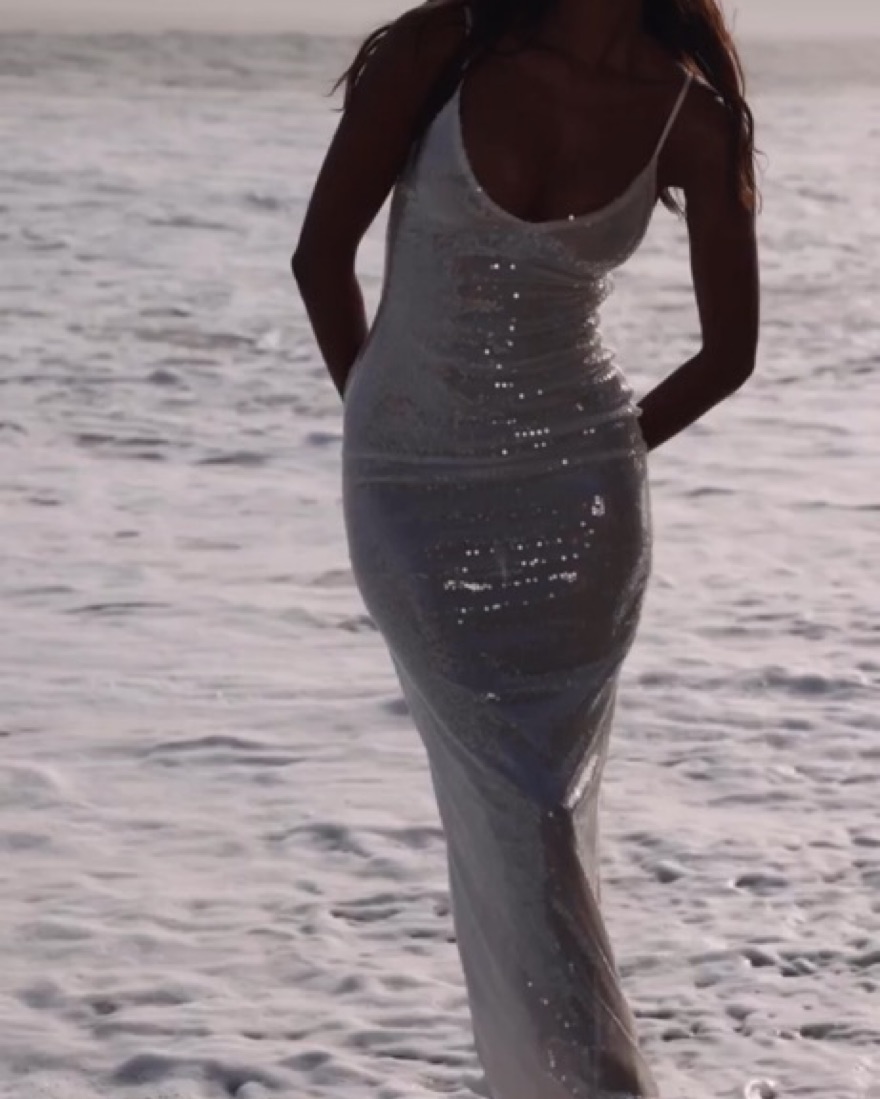 Glamorous evenings in Marlena. Created from our premium power mesh fabric with a flat sequin, raw edge hem overlay, Marlena was designed to elevate. Cut to a dramatic gown length, this glossy maxi dress features a bust-flattering v-neckline, cut-out detailing, a sultry low back, and a leg slit.