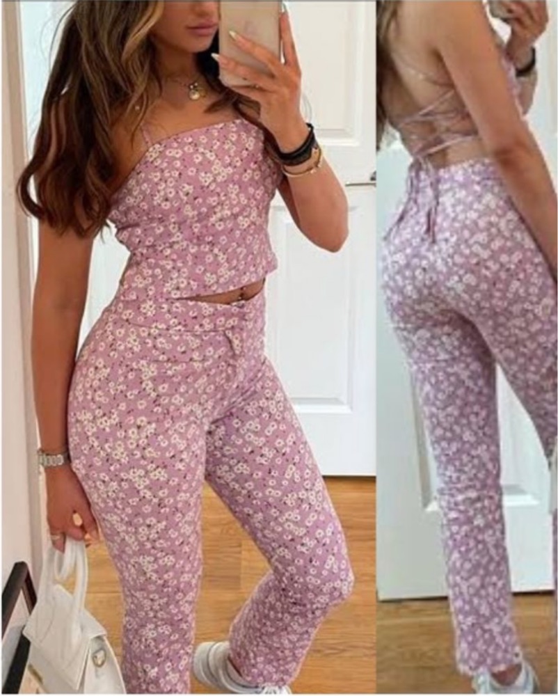 Open back, laced up halter top and matching pants. Fits small or xs.