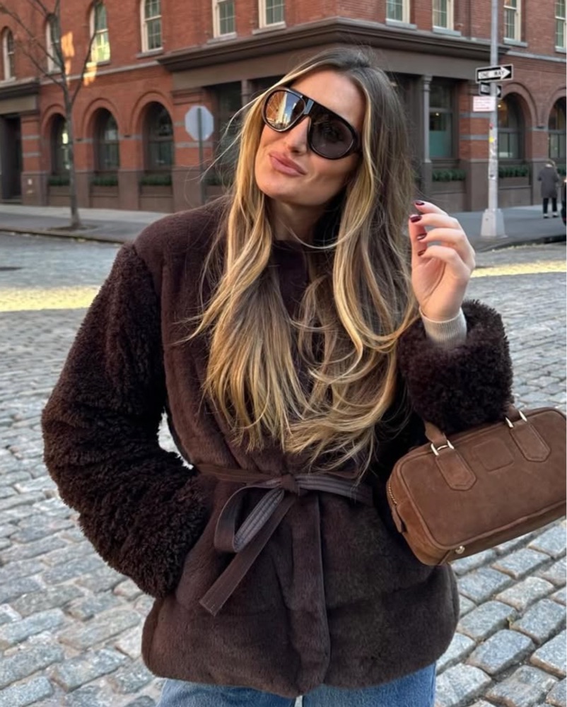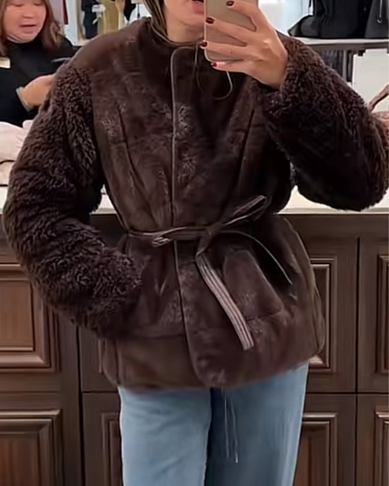 Moncler Brown Faux Fur Coat