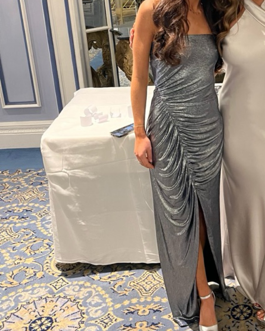 Black tie wedding silver gown. Very comfy