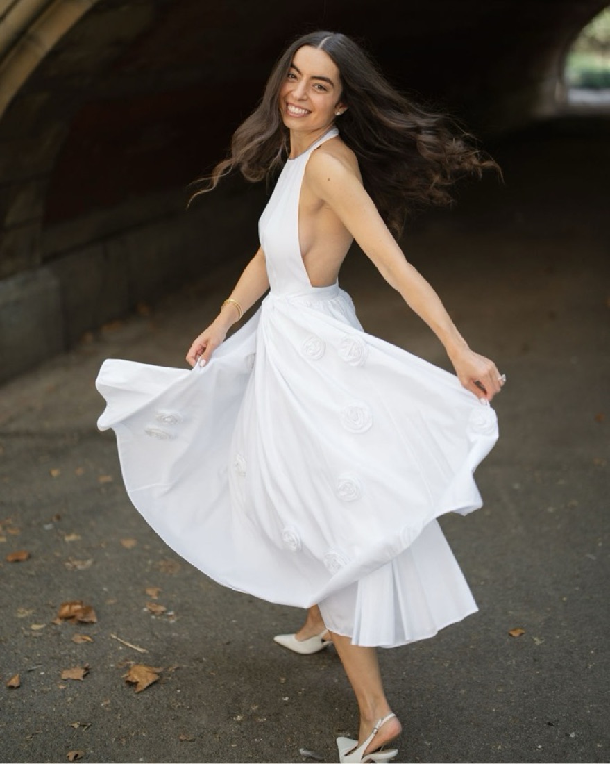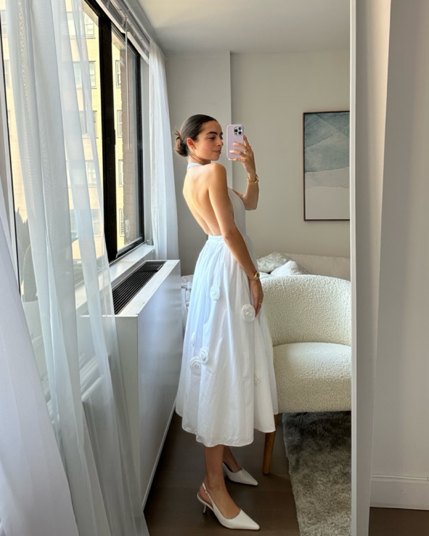 Renting my white prada rosette halter neck dress in perfect condition only worn once for my engagement shoot in central park perfect bridal dress only available in NYC fits like an XS / 0-2