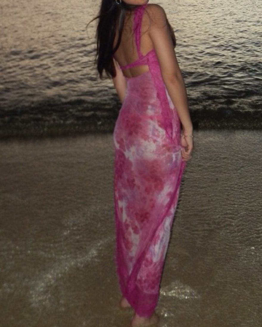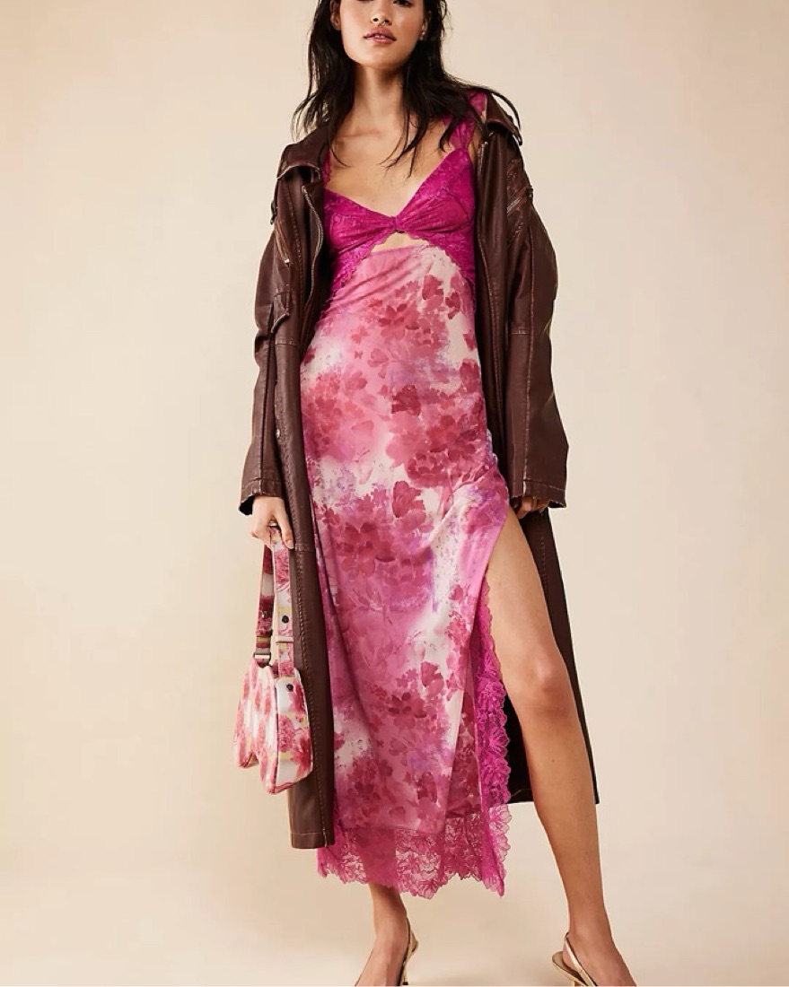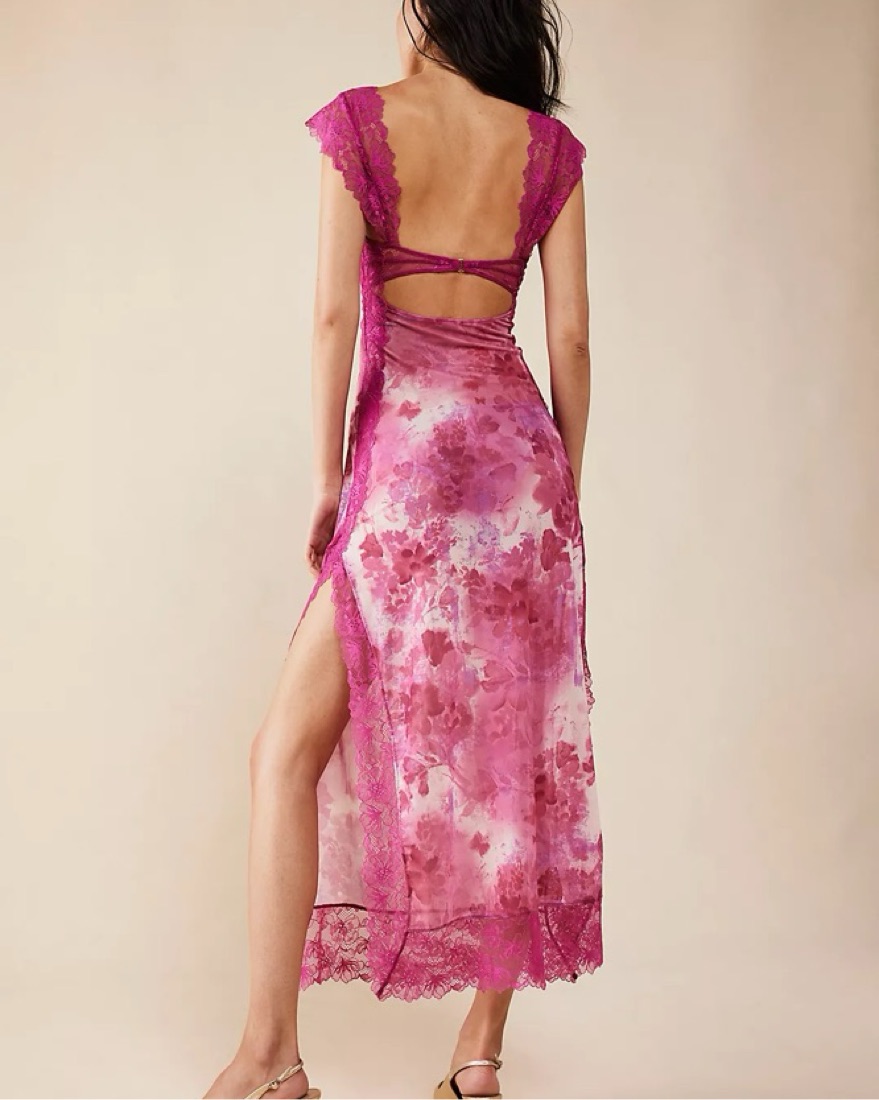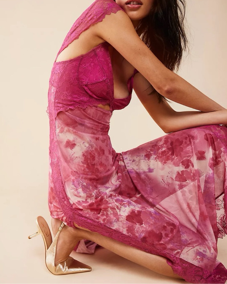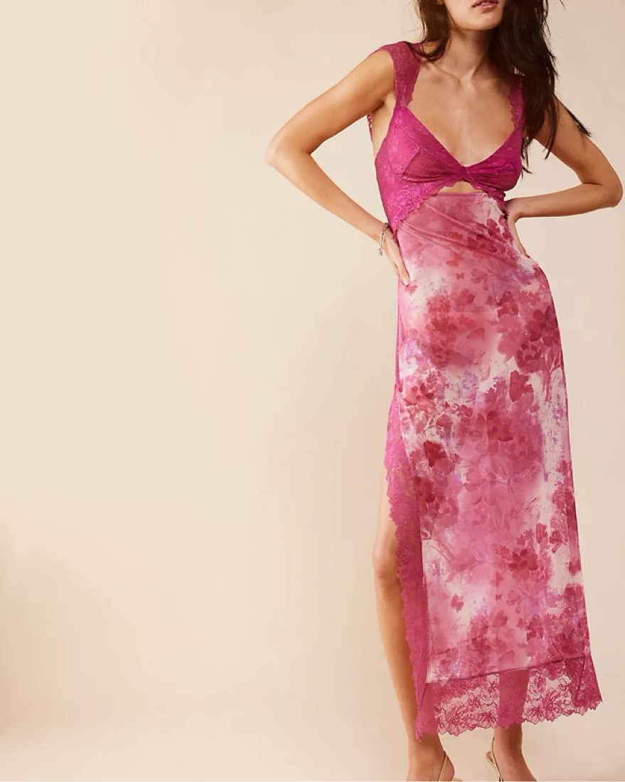 pink Free People floral maxi slip dress with lace detail. Perfect for summer ♡