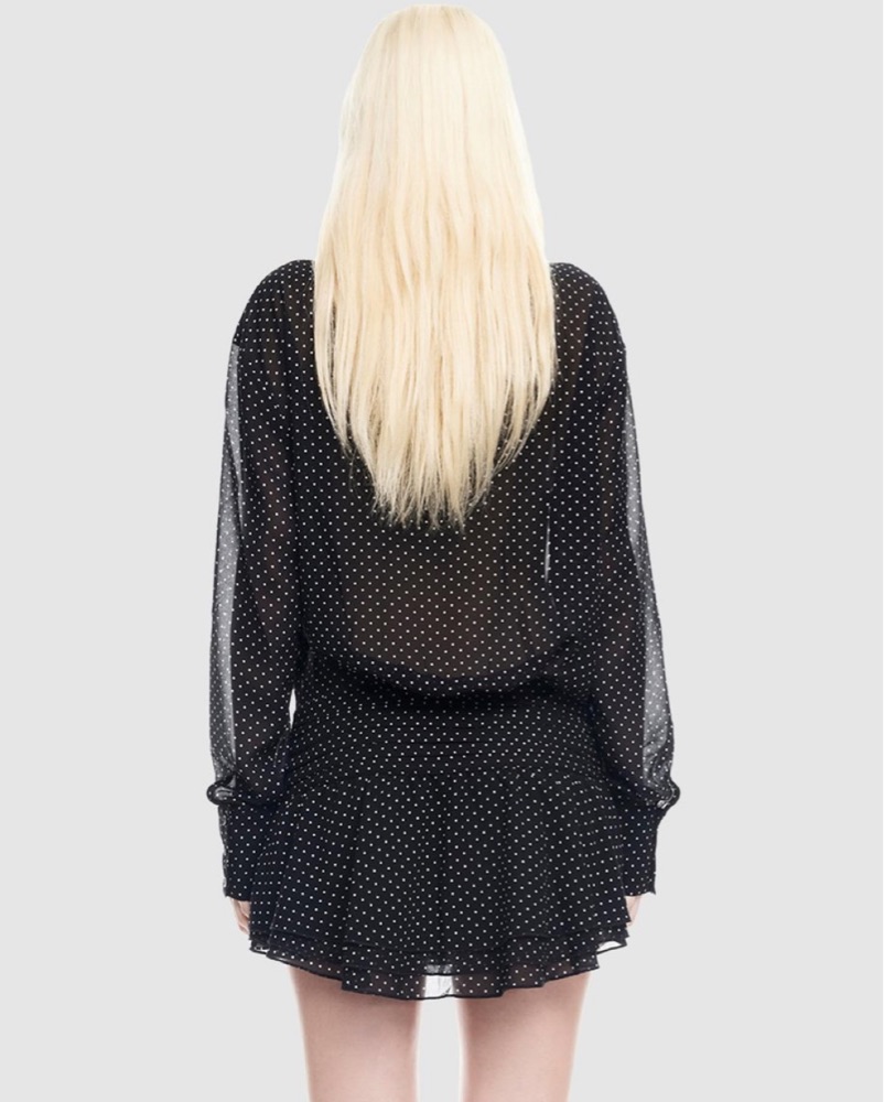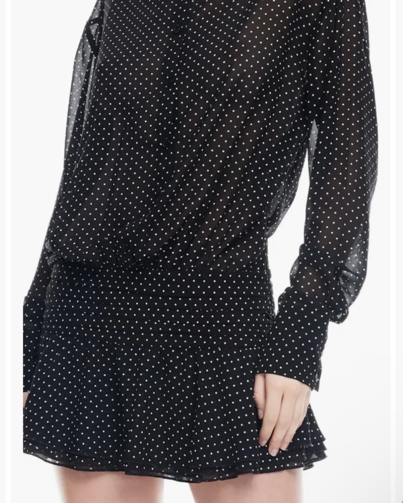 Lioness polka dot long sleeve dress. It can be worn with the buttons open at the front. Slightly sheer - lovely fabric. Nice and floaty. Never worn.