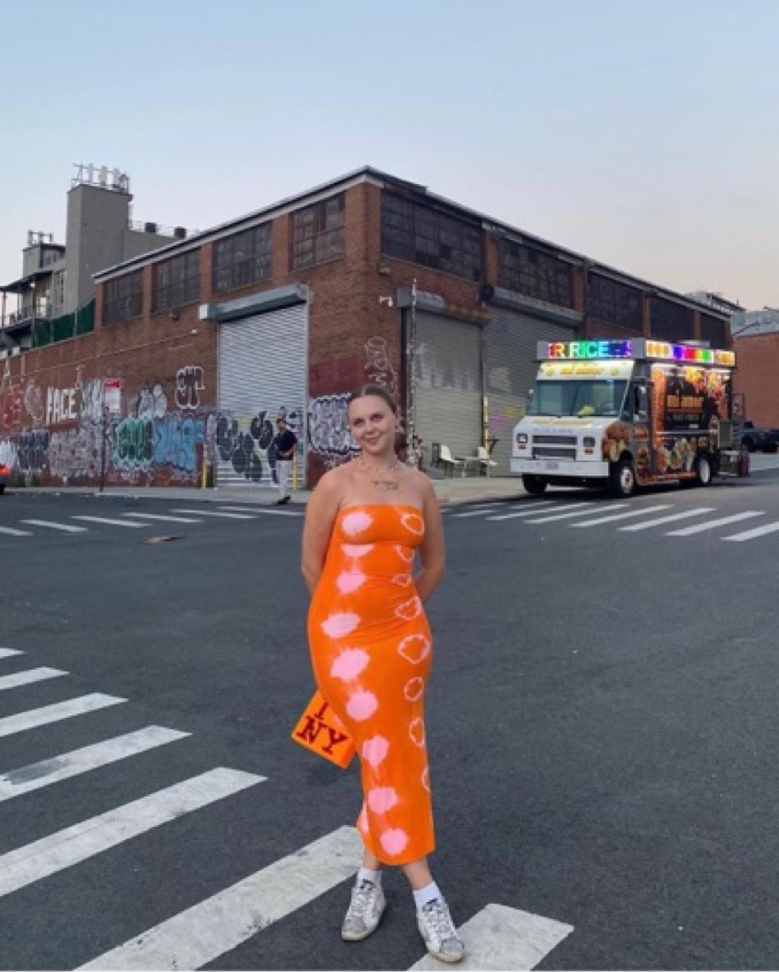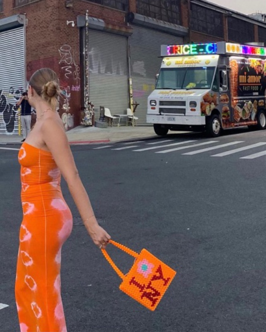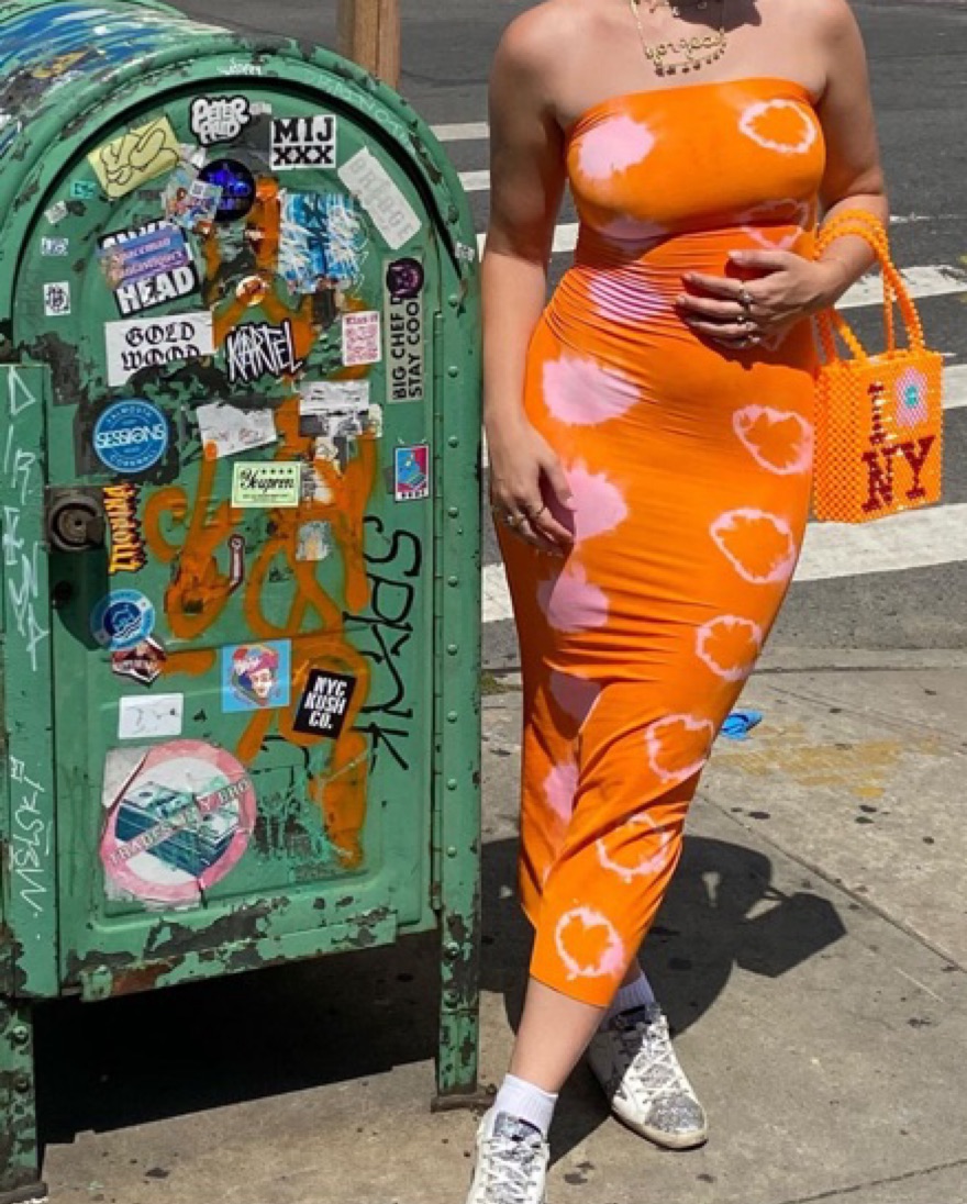 Dana Foley Orange & Pink Tie Dye Tube Dress, stretchy material that would fit a size S-L comfortably! Small batch item, made with love in NY. <3