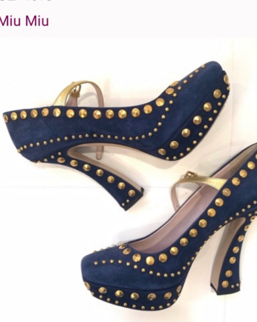 MIU MIU Studded Navy Blue Suede Shoe