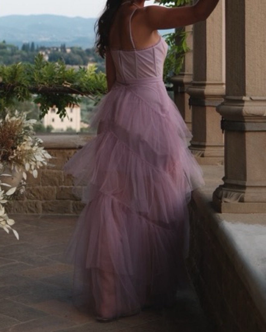 BCBG Corset Tulle Gown Orchid