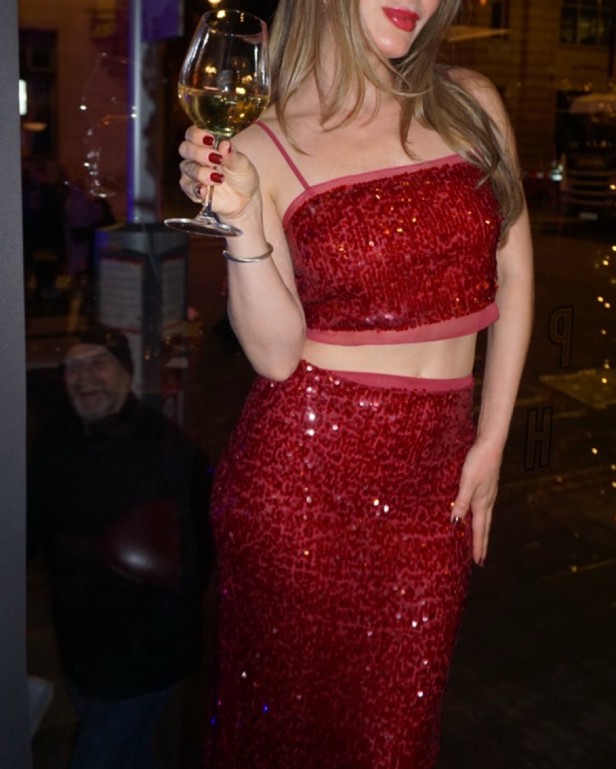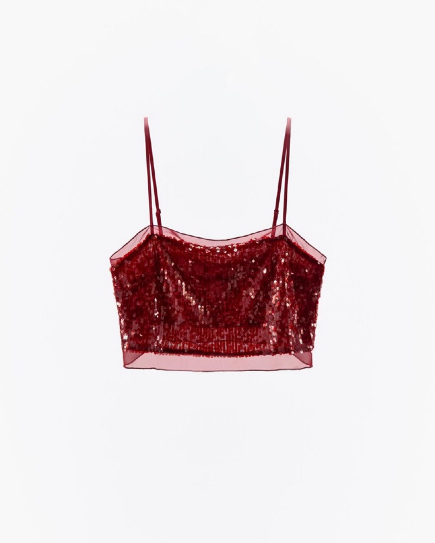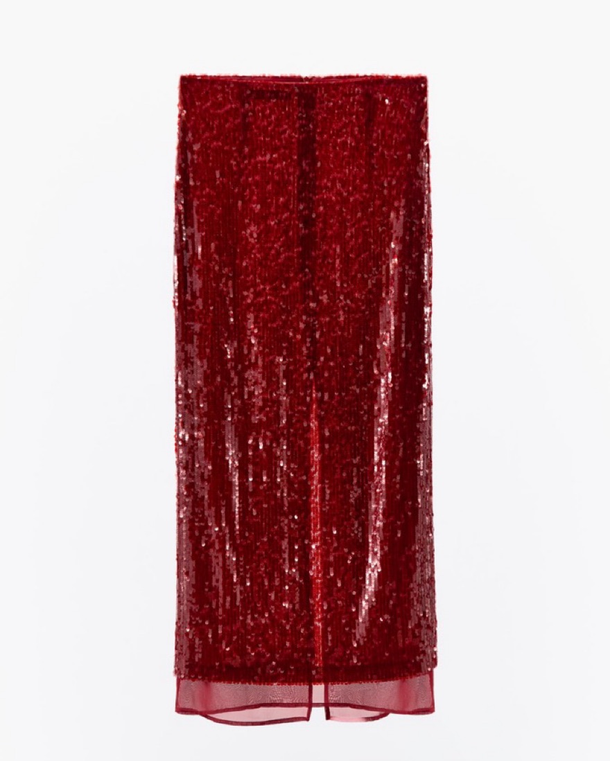 Zara Sequin Skirt & Crop Top Set Red by Zara - Pickle