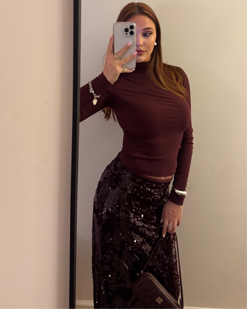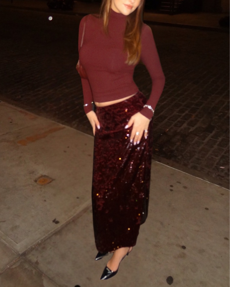 Burgundy Sequin Midi Skirt