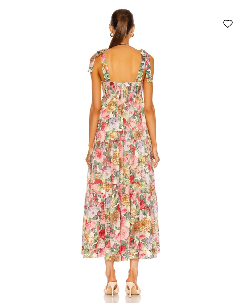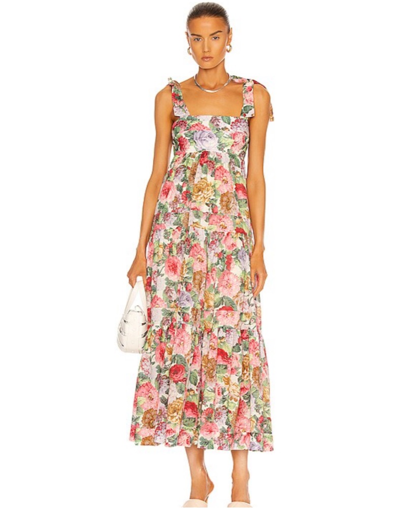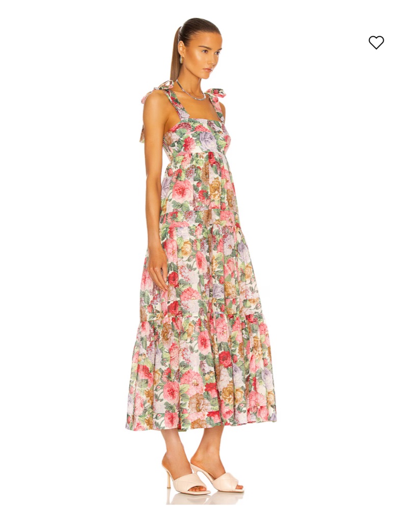 This beautiful midi dress is perfect for a spring or summer wedding, garden party, or other special occasion. The vibrant floral print and flowing silhouette create a romantic, feminine look.