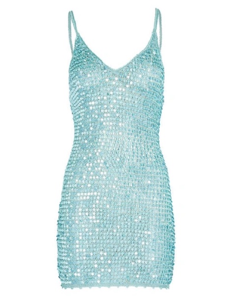 Sequined open-knit mino dress in Blue-It