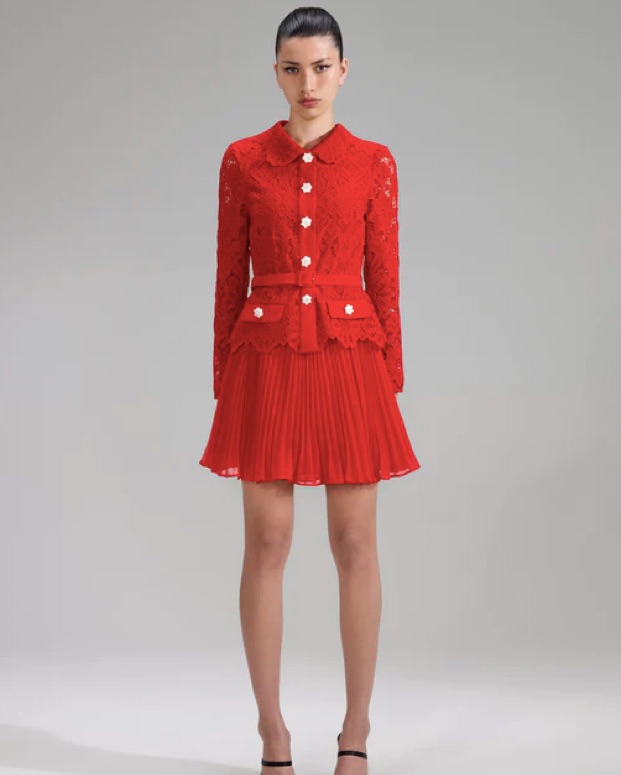 Self Portrait Button Up Dress Red