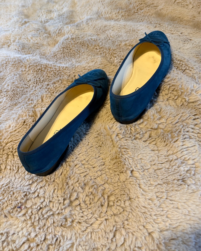 In beautiful condition, these Chanel flats in blue suede add a classic touch to dress up or down.