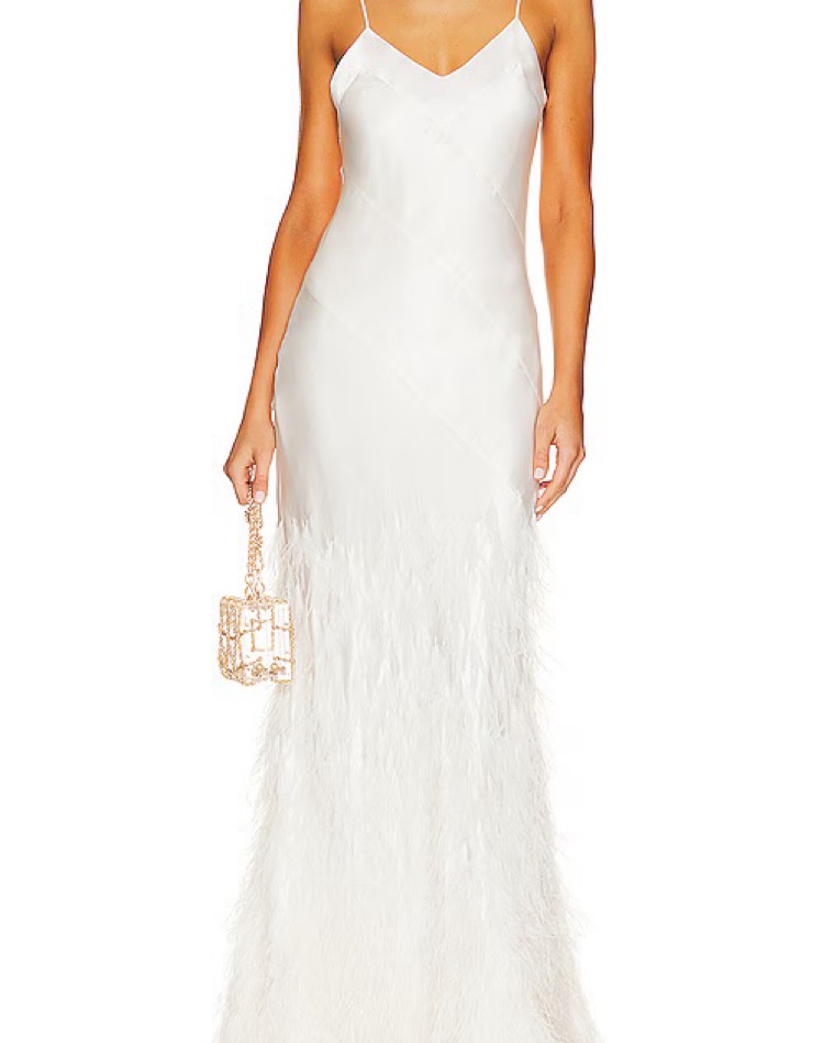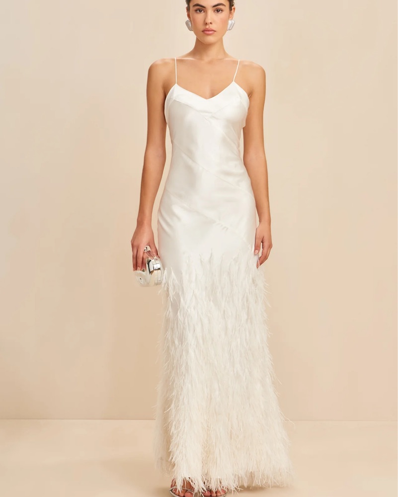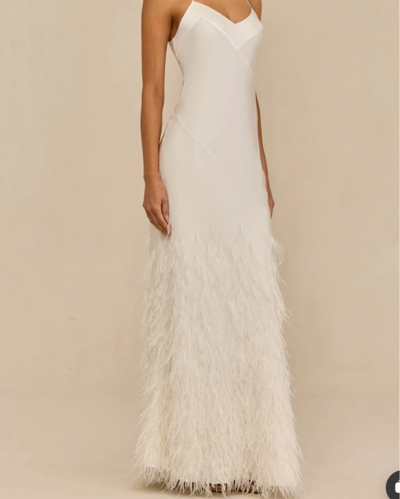 Cult Gaia White Silk Feather Gown S