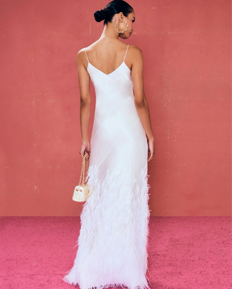 Cult Gaia White Silk Feather Gown S by Cult Gaia - Pickle