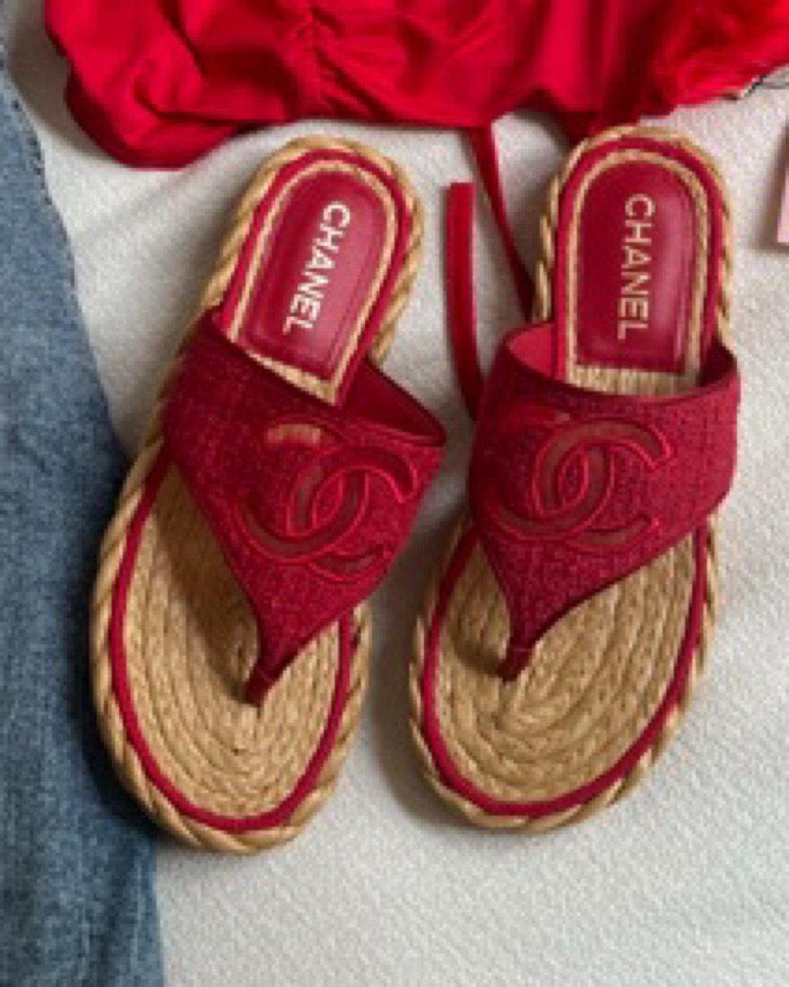 Chanel Red Tweed Sandals