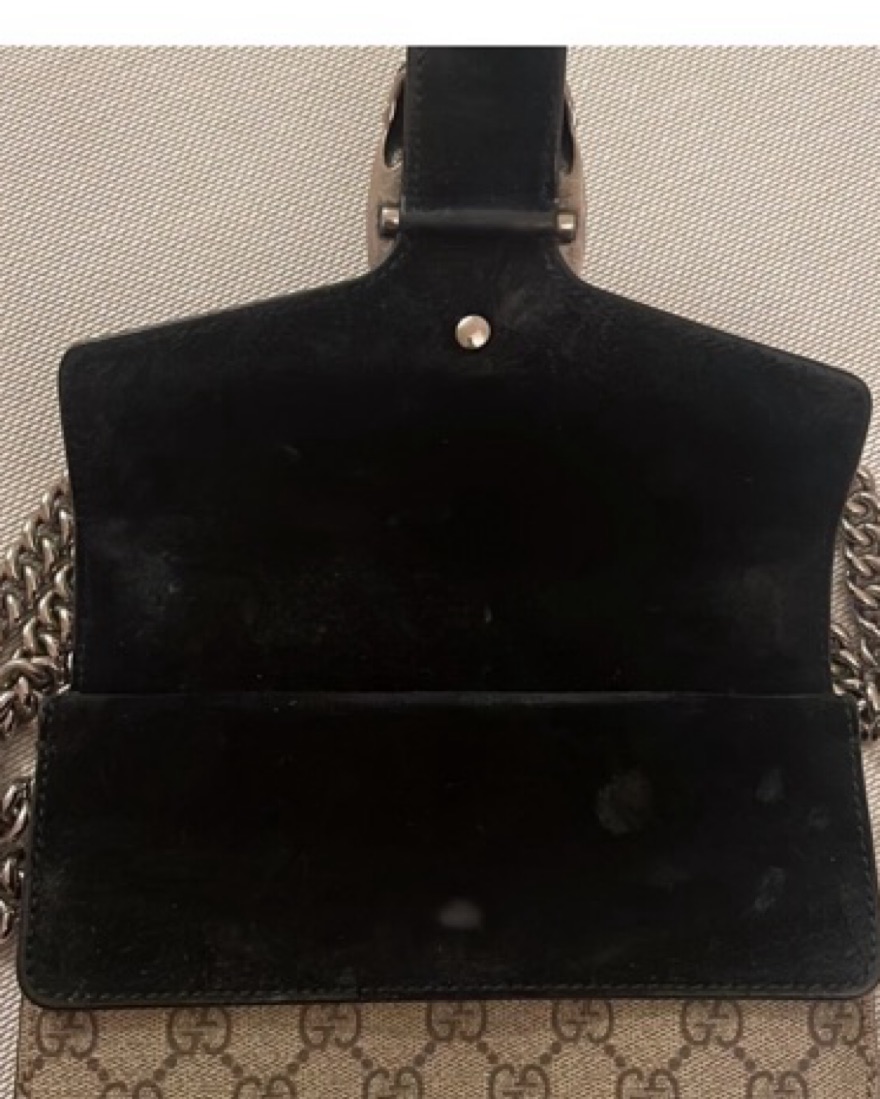 Great condition on the outside with a few stains on the suede inside that isn’t visible when closed.