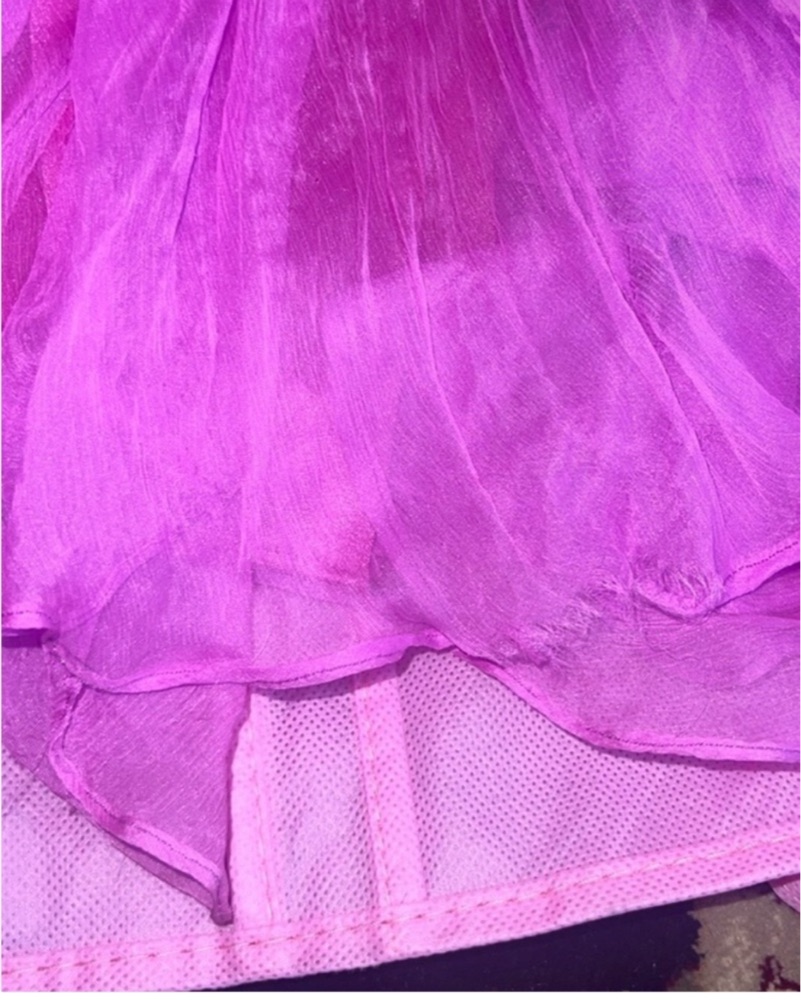 Small rip on the bottom-- not noticeable, I wore it with the rip. fabric-- slightly shortened and tightened.