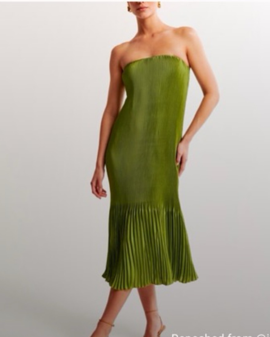 A&F pleated green midi dress. Flattering strapless midi dress in our soft satin fabric, featuring on-trend pleat release details throughout. Size small but can fit a medium