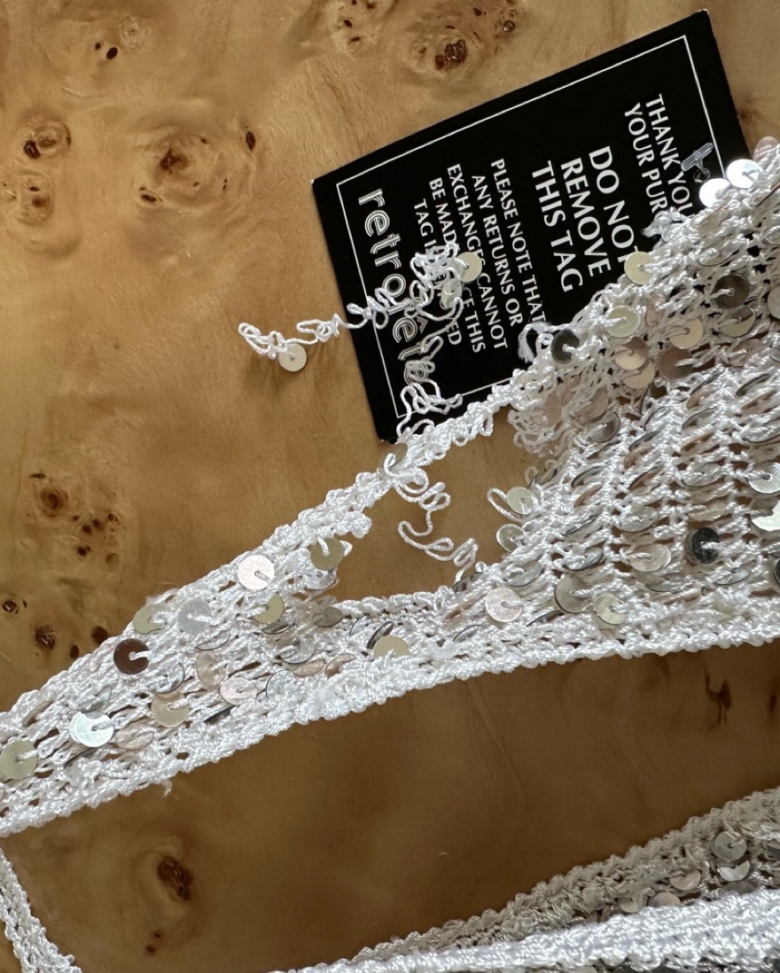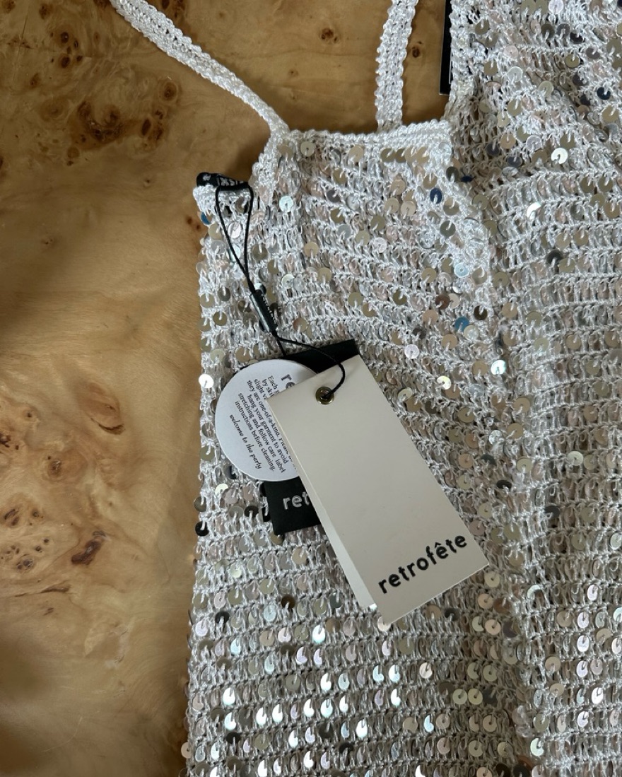 Retrofete White Sequin Maxi Dress brand new with tags tiny hole in the sleeve (pictured in last slide) please be careful!! Tag says XS/S
