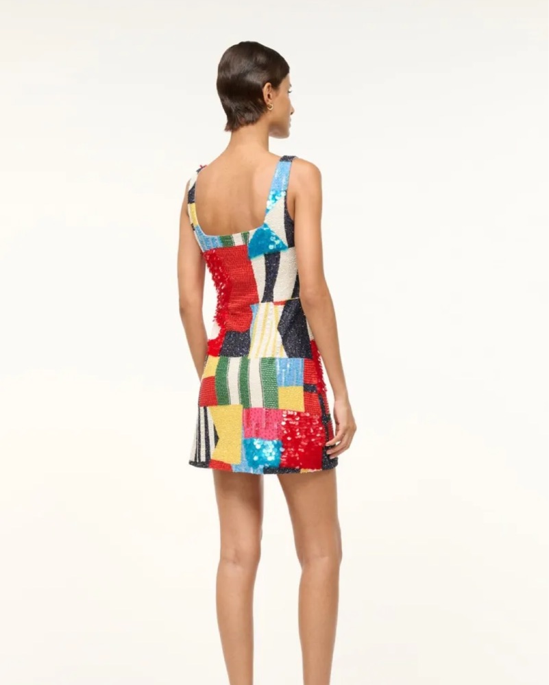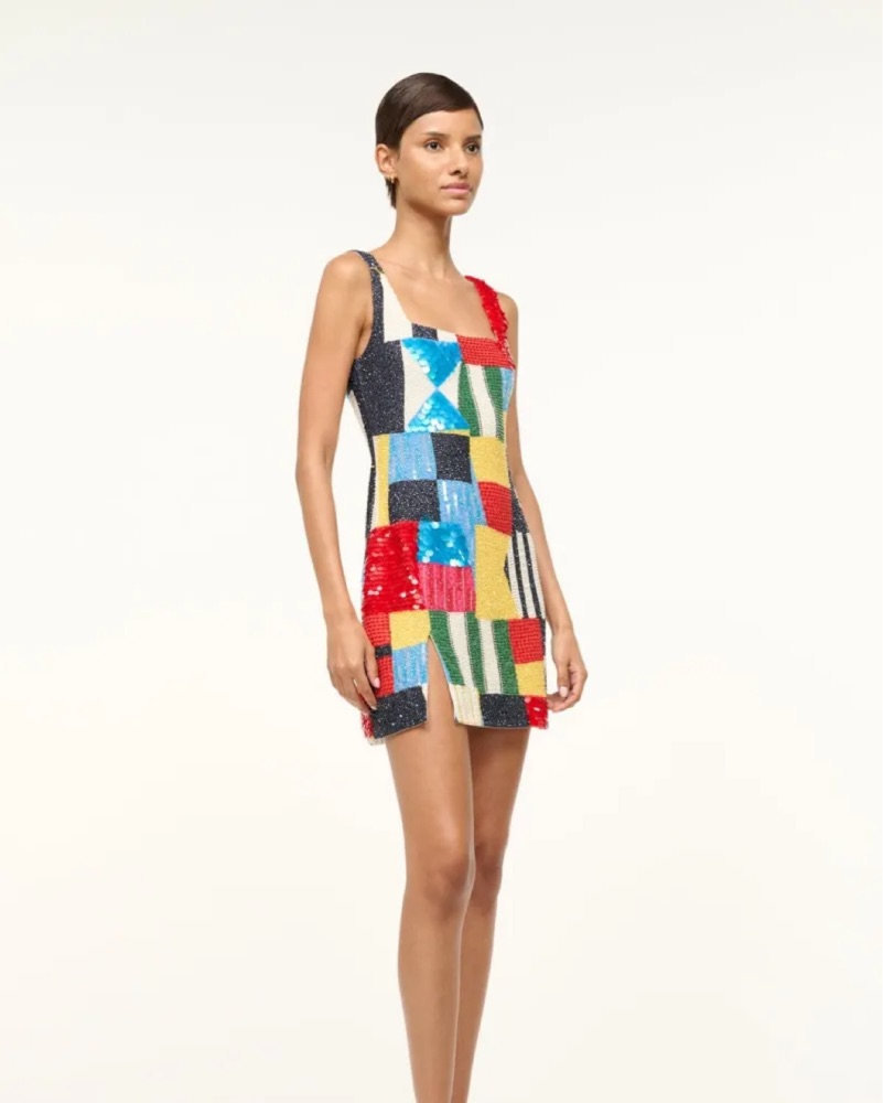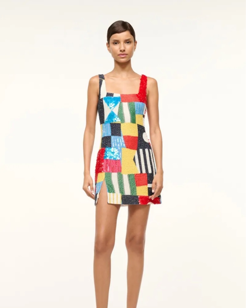 Our best-selling hand-beaded mini dress has been updated for Summer in a nautical-inspired print. This style is fully beaded and features a side slit and a hidden zipper at the back. Size L but could easily fit anyone a size 6-12.
