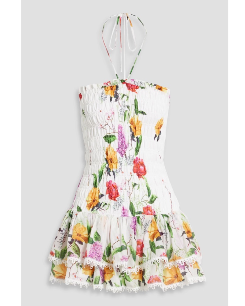 Charo Ruiz Ibiza Cusia Shirred Floral Print Cotton Blend Voile Mini Dress! There’d no tie around the neck on this dress- perfect for vacation