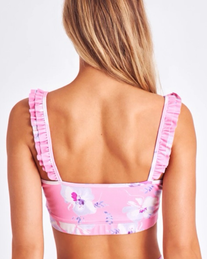 With an ultra-lightweight fabric, this bra is designed to provide maximum comfort and is perfect for any low-impact workout like pilates or hot yoga. Sweet ruffles at the neckline and along the straps give this piece a chic finish. Skirt has Built-in shorts Pull-on styling w wide stretch waistband