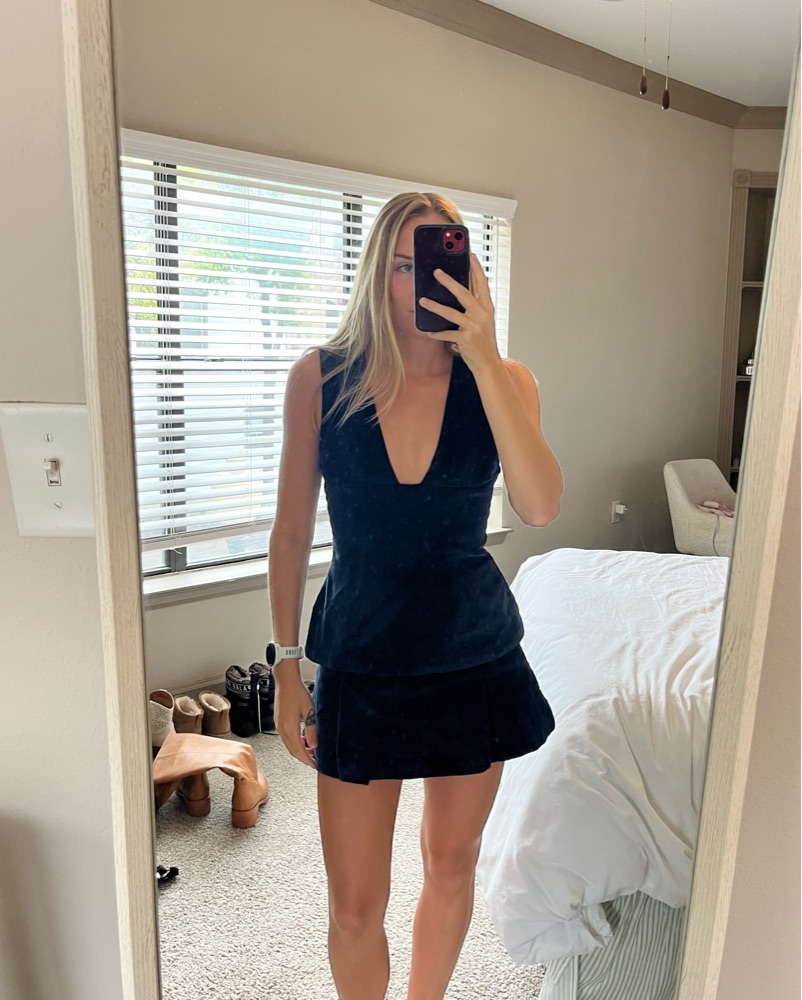 Matching top and skirt both size xs and fit true to size.