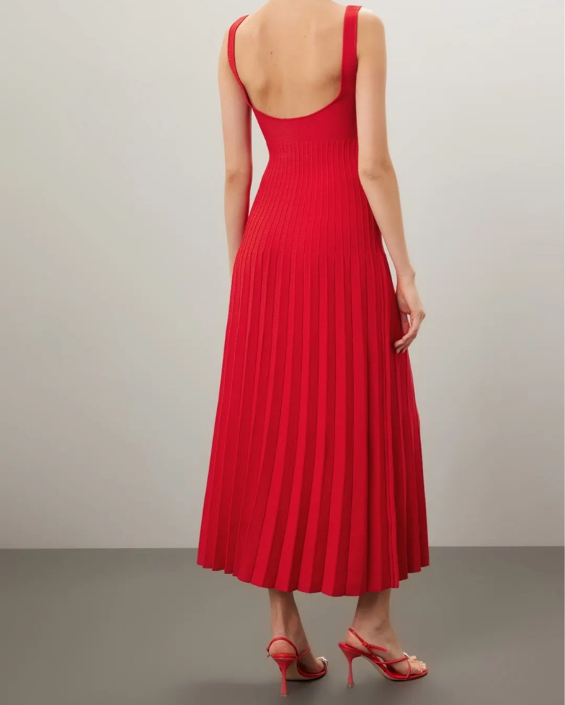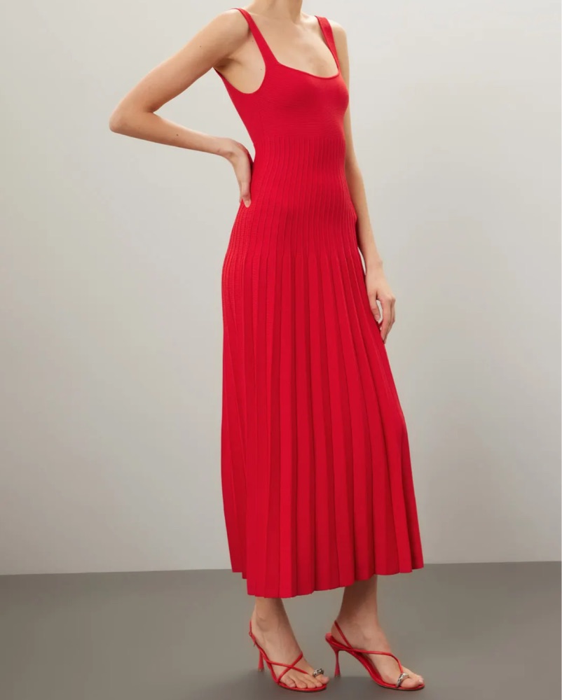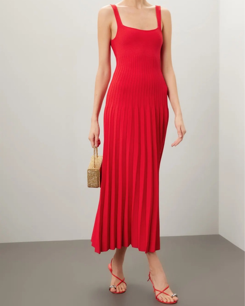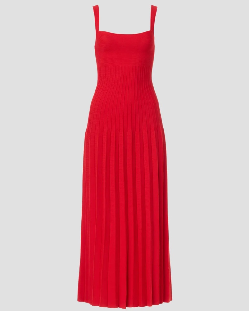Staud’s new compact knit maxi dress. The Ellison features a square neckline, bra-friendly straps, and ottoman stitch detailing at the waist for the perfect flattering fit.