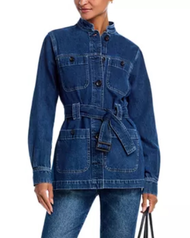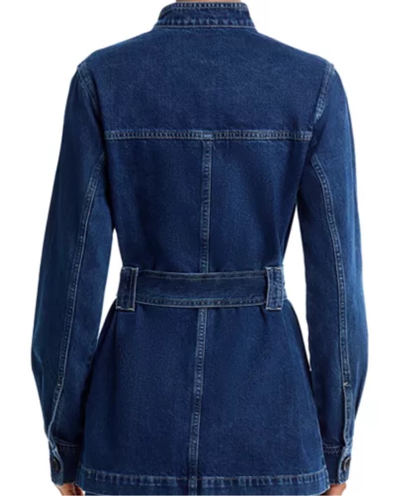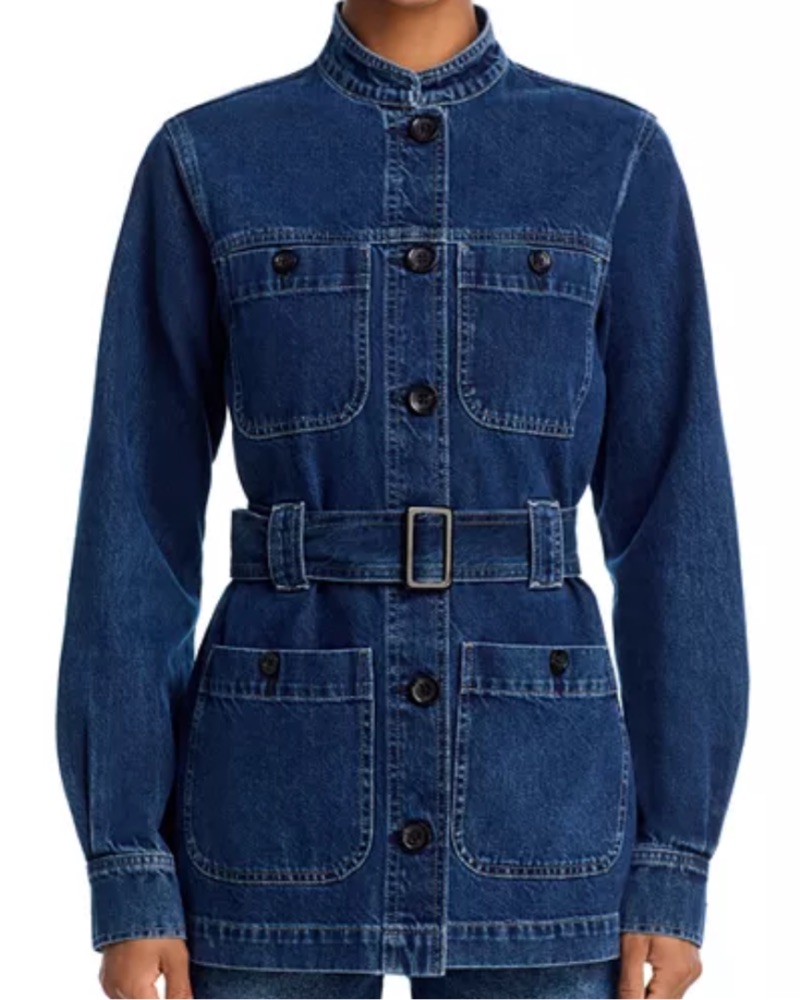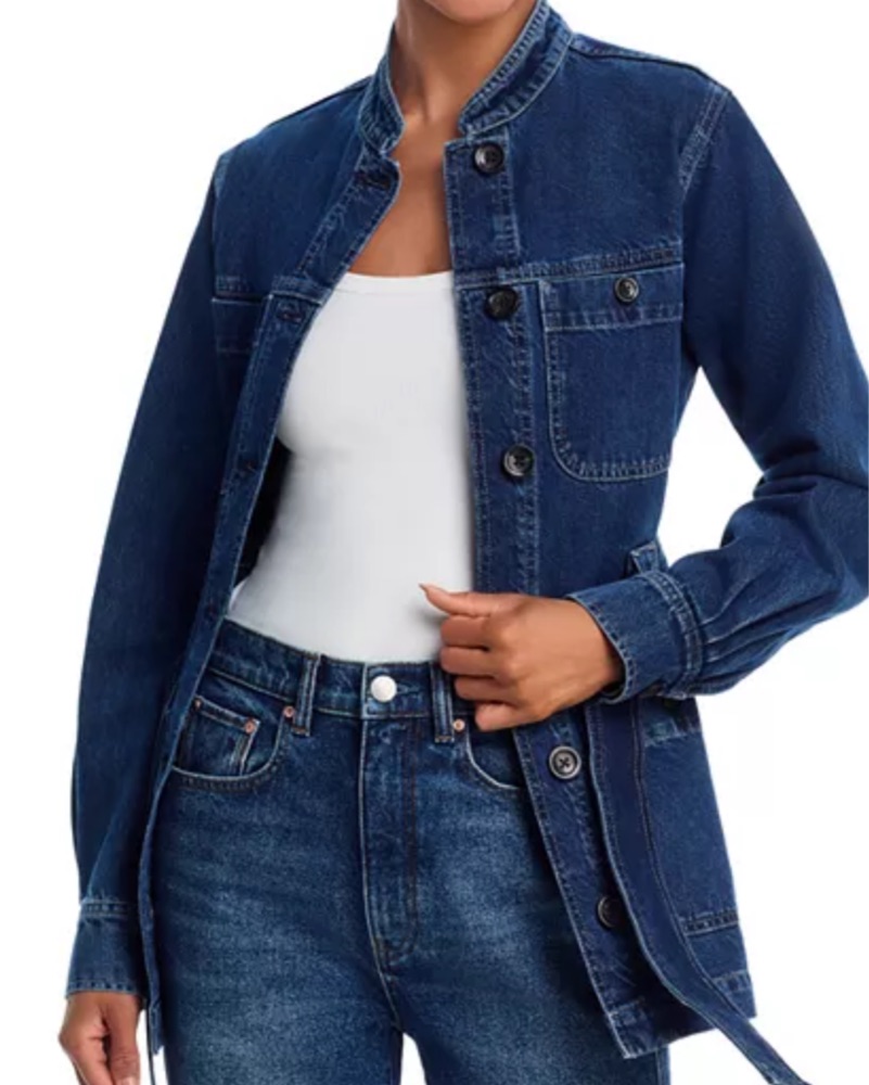 This denim utility jacket is a versatile piece that can be dressed up or down. Pair it with jeans and a t-shirt for a casual weekend look or layer it over a dress for a more polished vibe.
