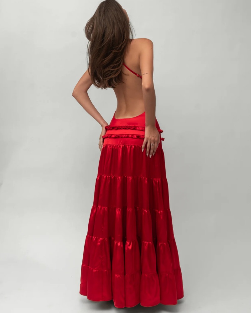 Adjustable strap red backless dress, sooo stunning