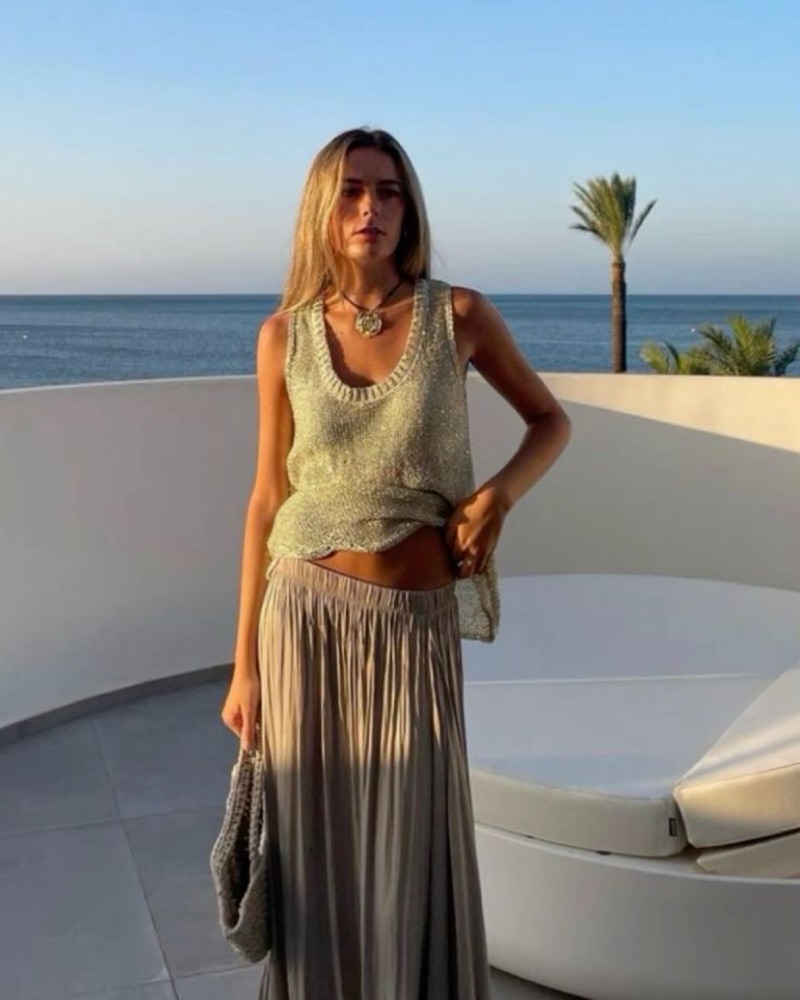 This chic and versatile knit top is perfect for a variety of occasions, from a beachside soiree to a night out on the town.