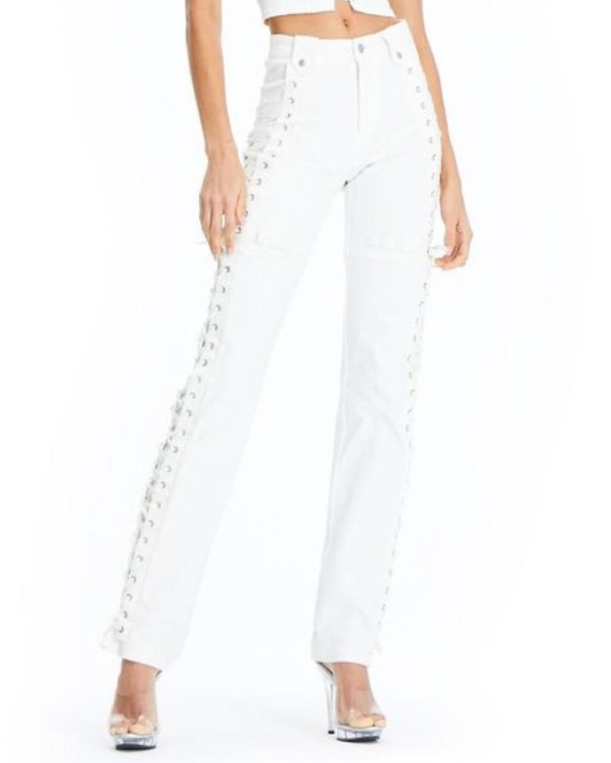 Never worn I AM GIA pants | ASO Kylie Jenner White high waisted pant Fitted with stretch fabric Adjustable ties down sides of leg