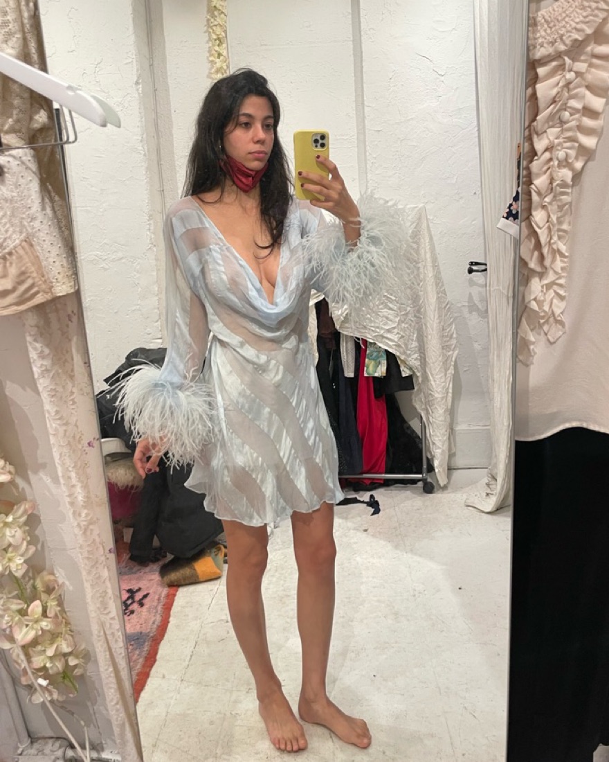 Sheer Dana Foley Feather Dress
