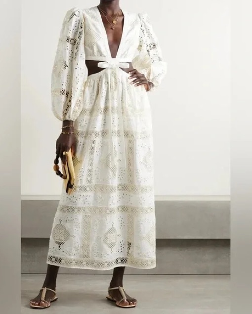 ZIMMERMANN Aliane Cutout Tie-front Broderie Anglaise Cotton Midi Dress. Zimmermann size 0, fits a size 0 or 2 with a smaller torso. Absolutely showstopping piece