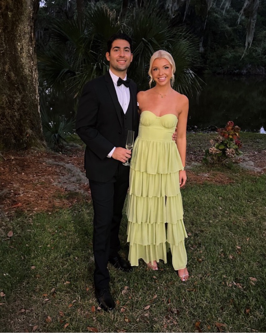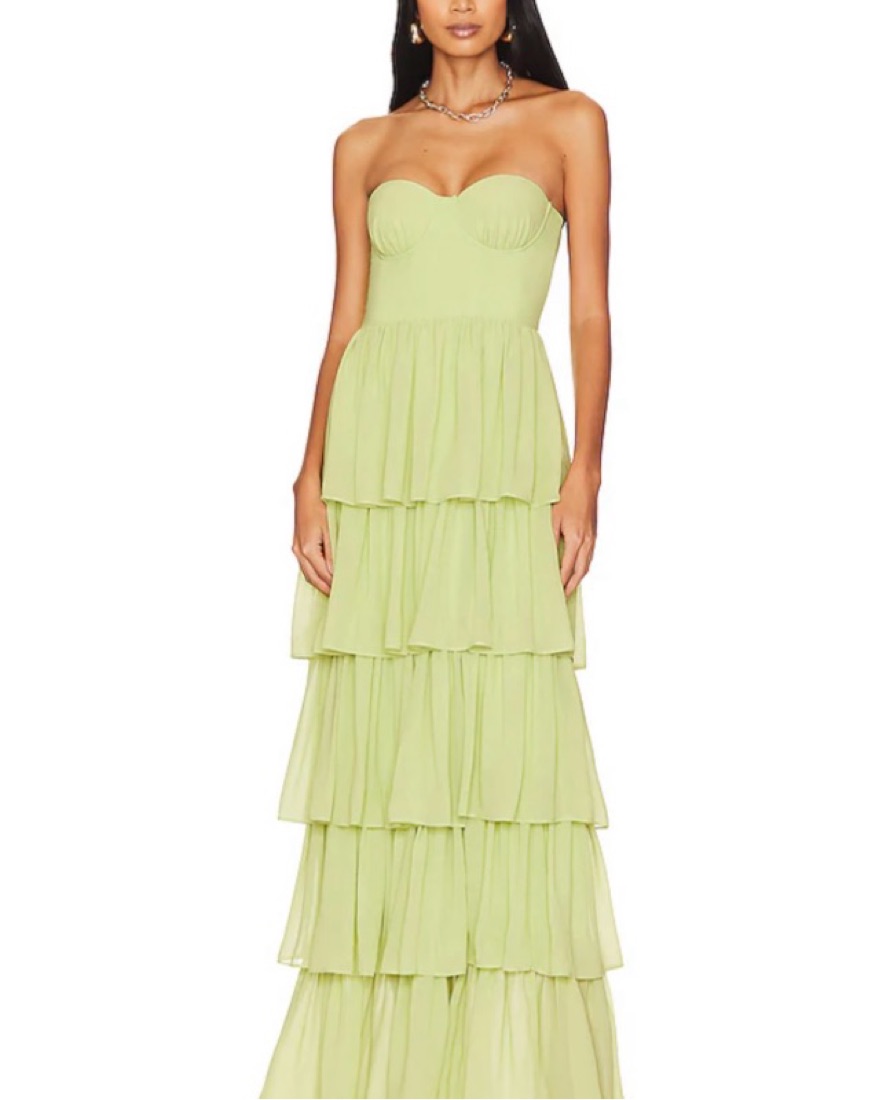 Lovers and Friends Hattie Gown in green! Perfect for a black tie wedding or event.