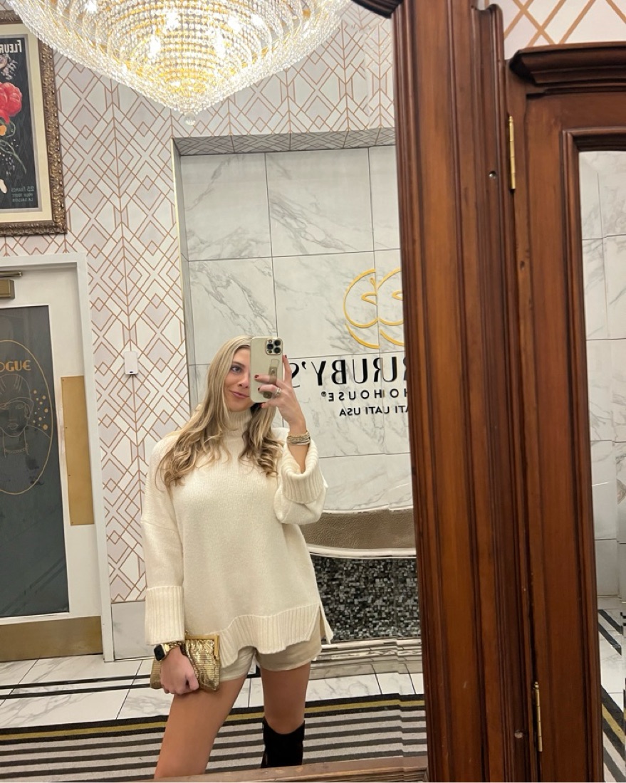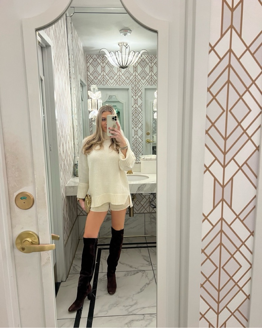 The cutest little silk mini shorts from reformation. A white/gold ish color