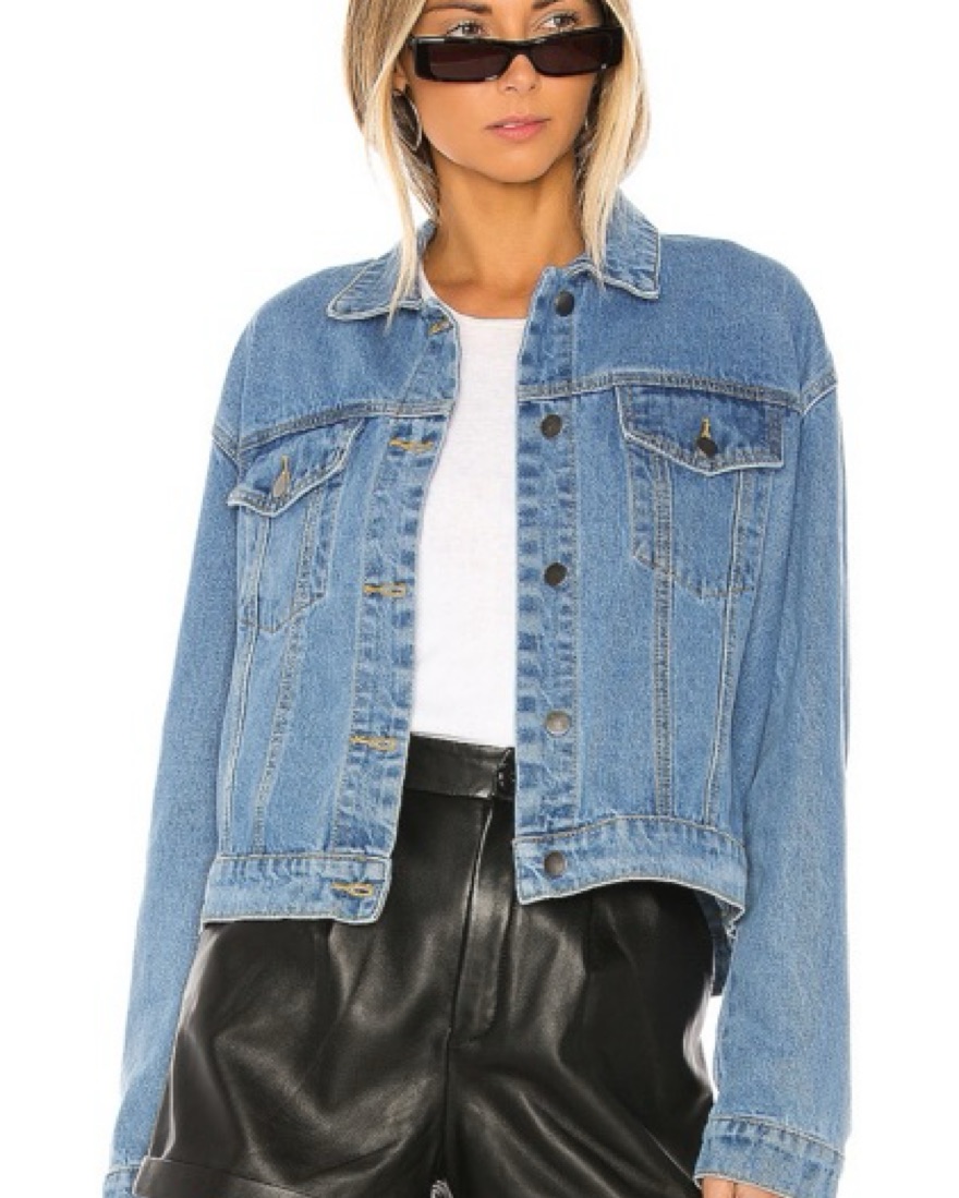 Superdown denim jacket with rhinestone fringe on back and sleeves. So fun for concerts, etc. Worn less than 5 times