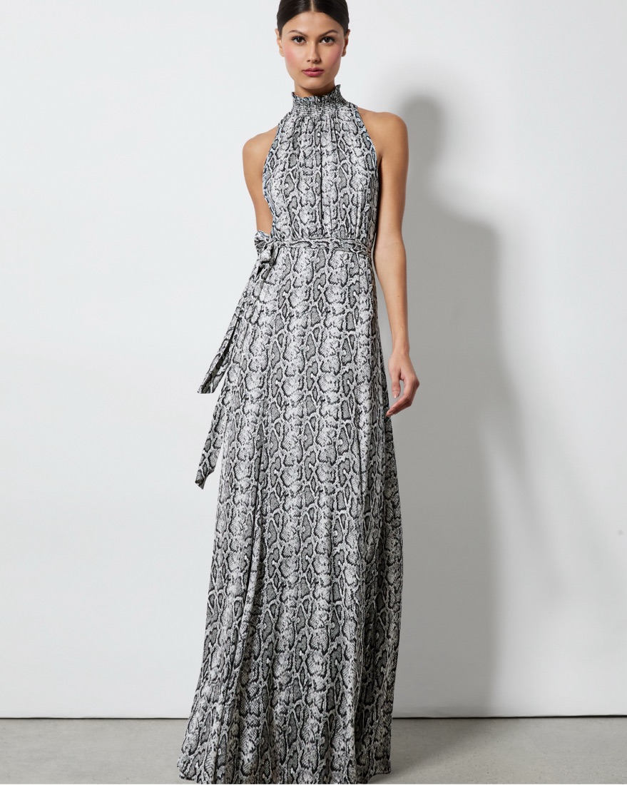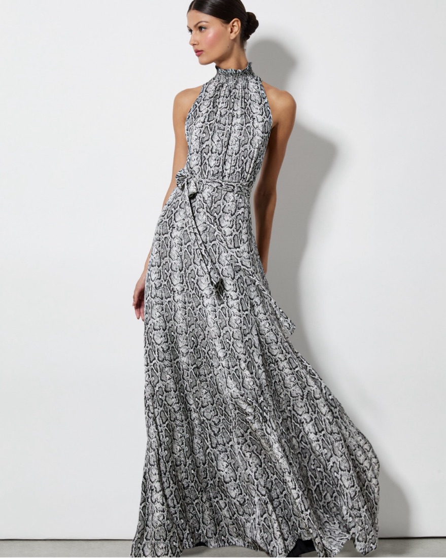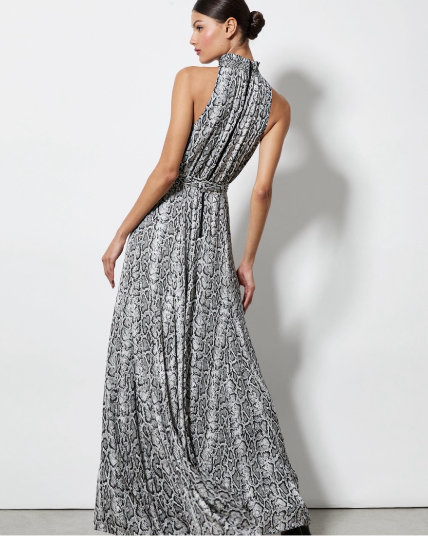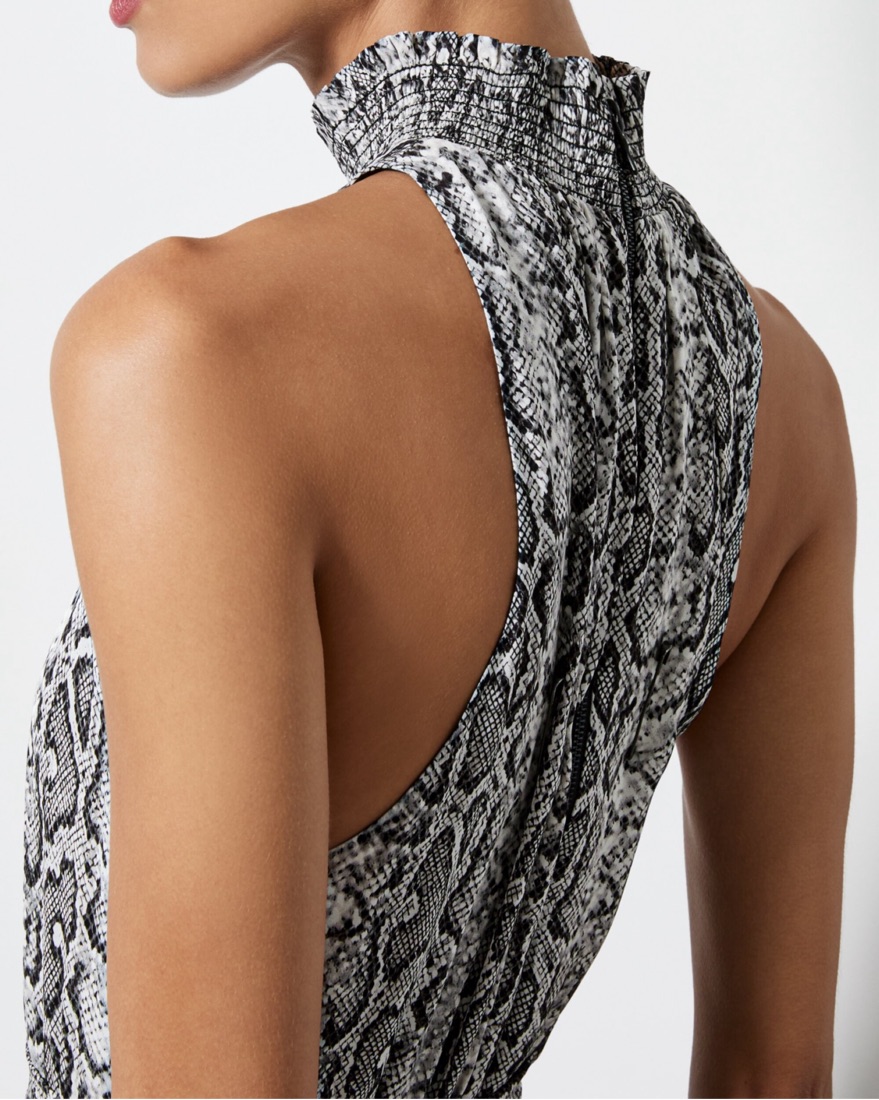 This romantic dress includes so many things to love, like that high neckline, gorgeous snakeskin print, adjustable tie belt and sleeveless construction. Plus we crafted it in a dreamy viscose that moves in a such a beautiful way. New with tags